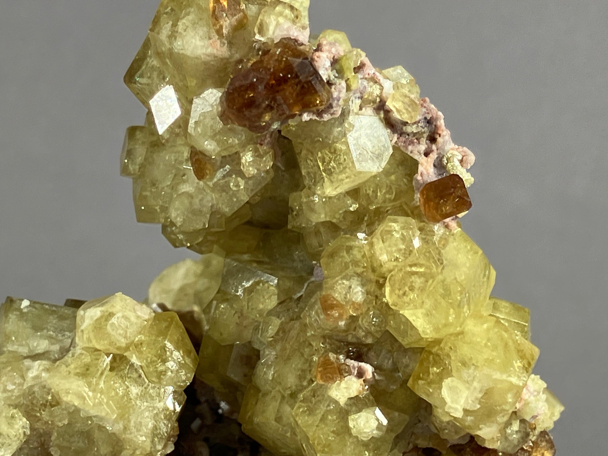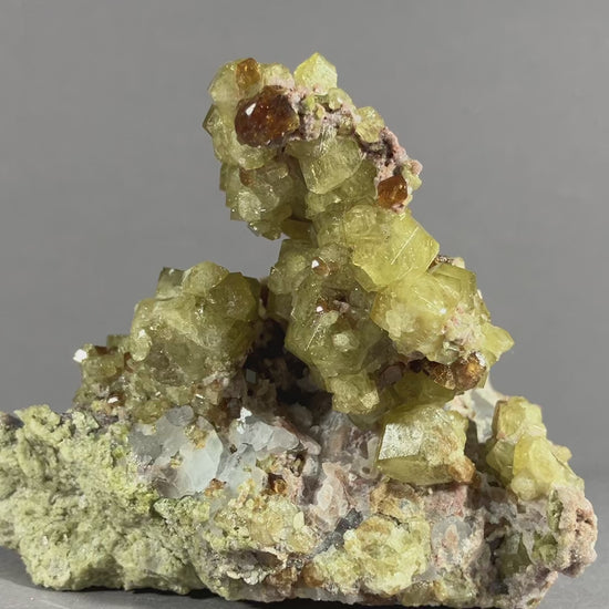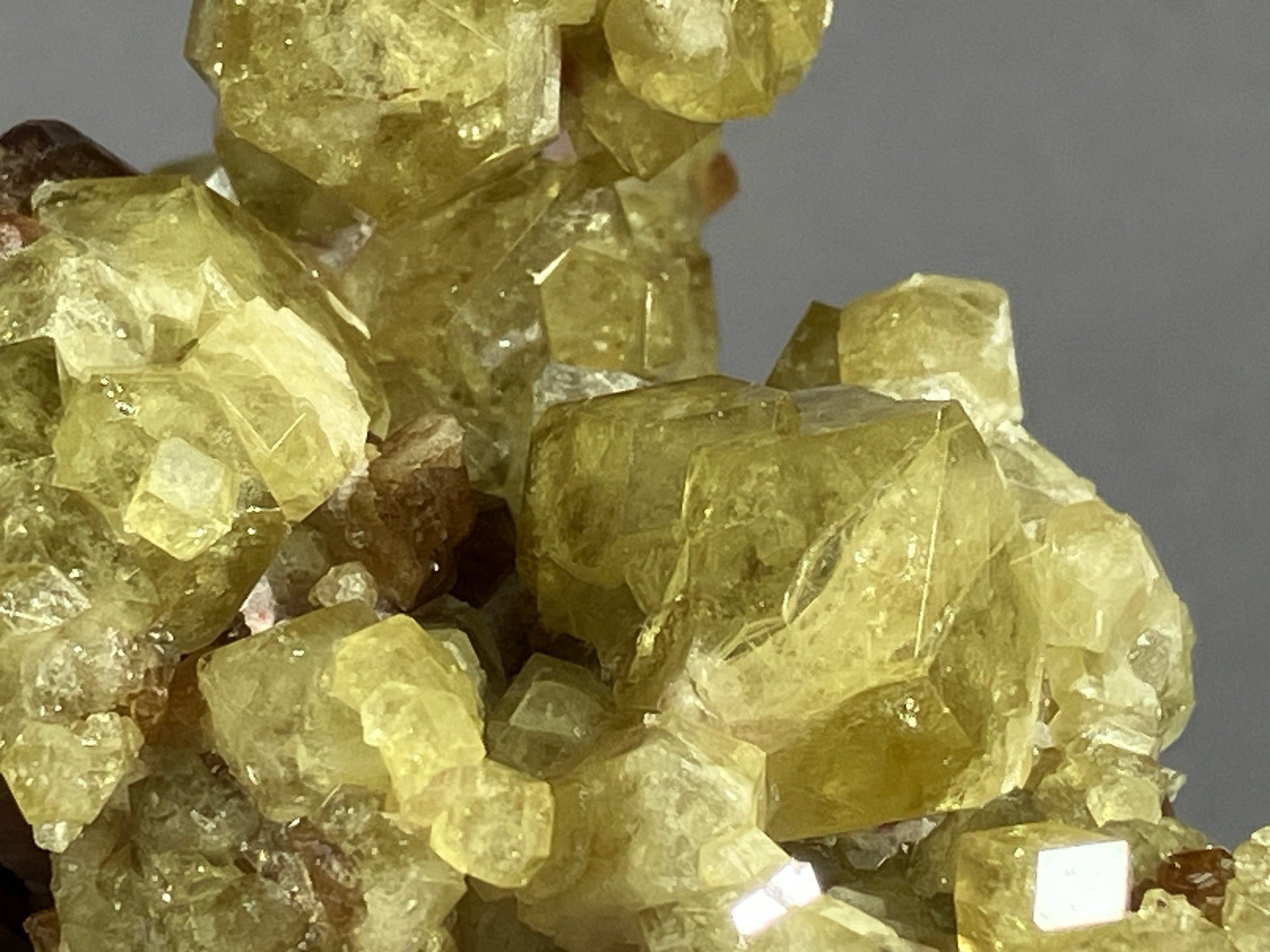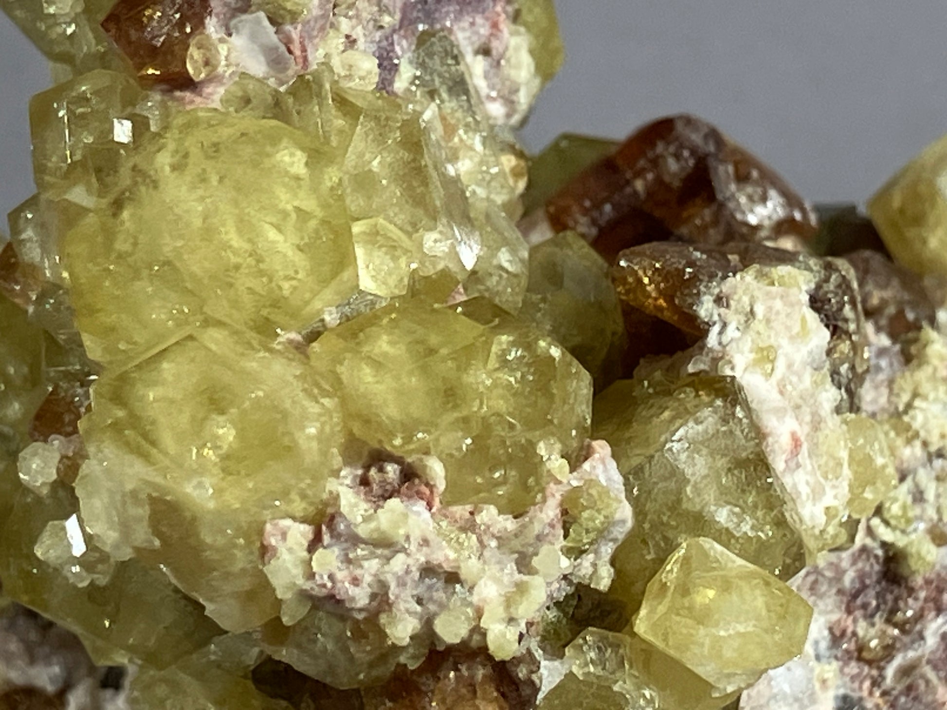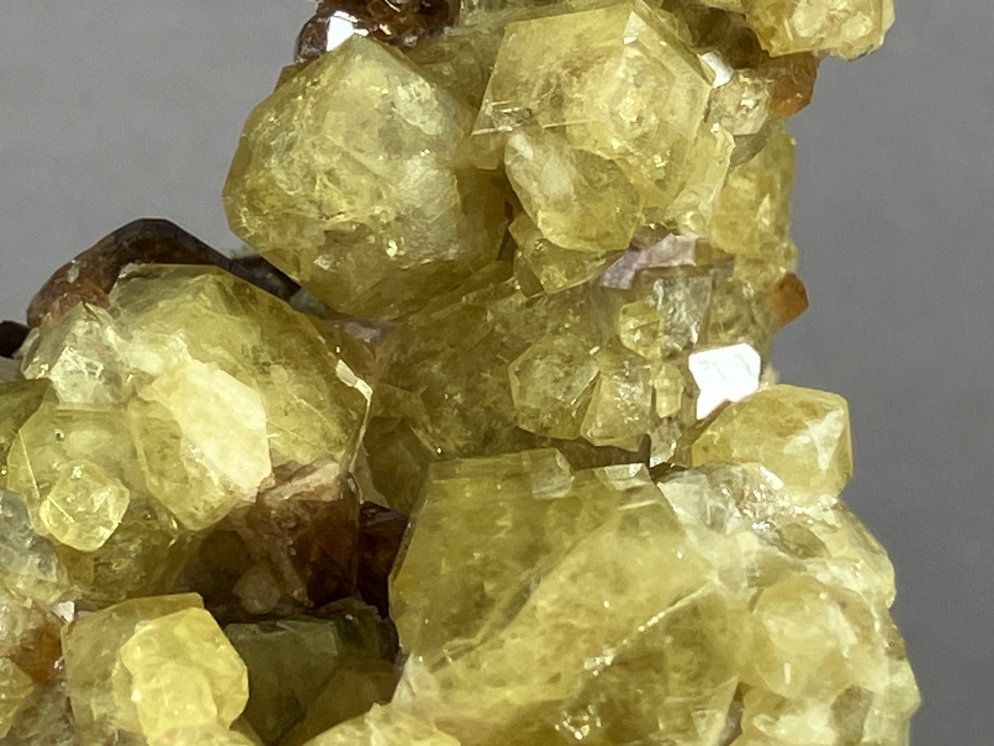 Was für ein wunderbares Stück. Gelbe Andraditkristalle (var. Topazolit) und braune gepaart auf einer super Stufe.