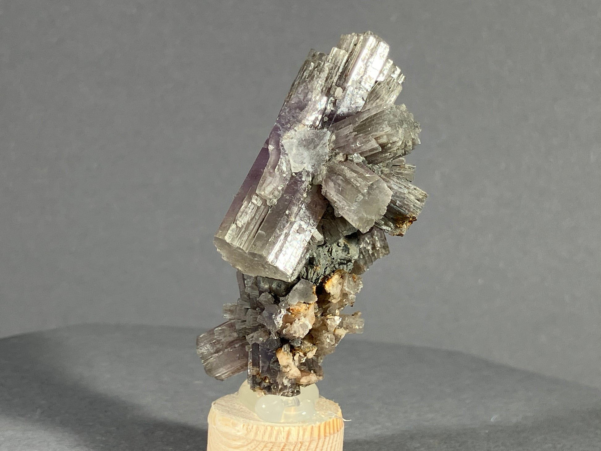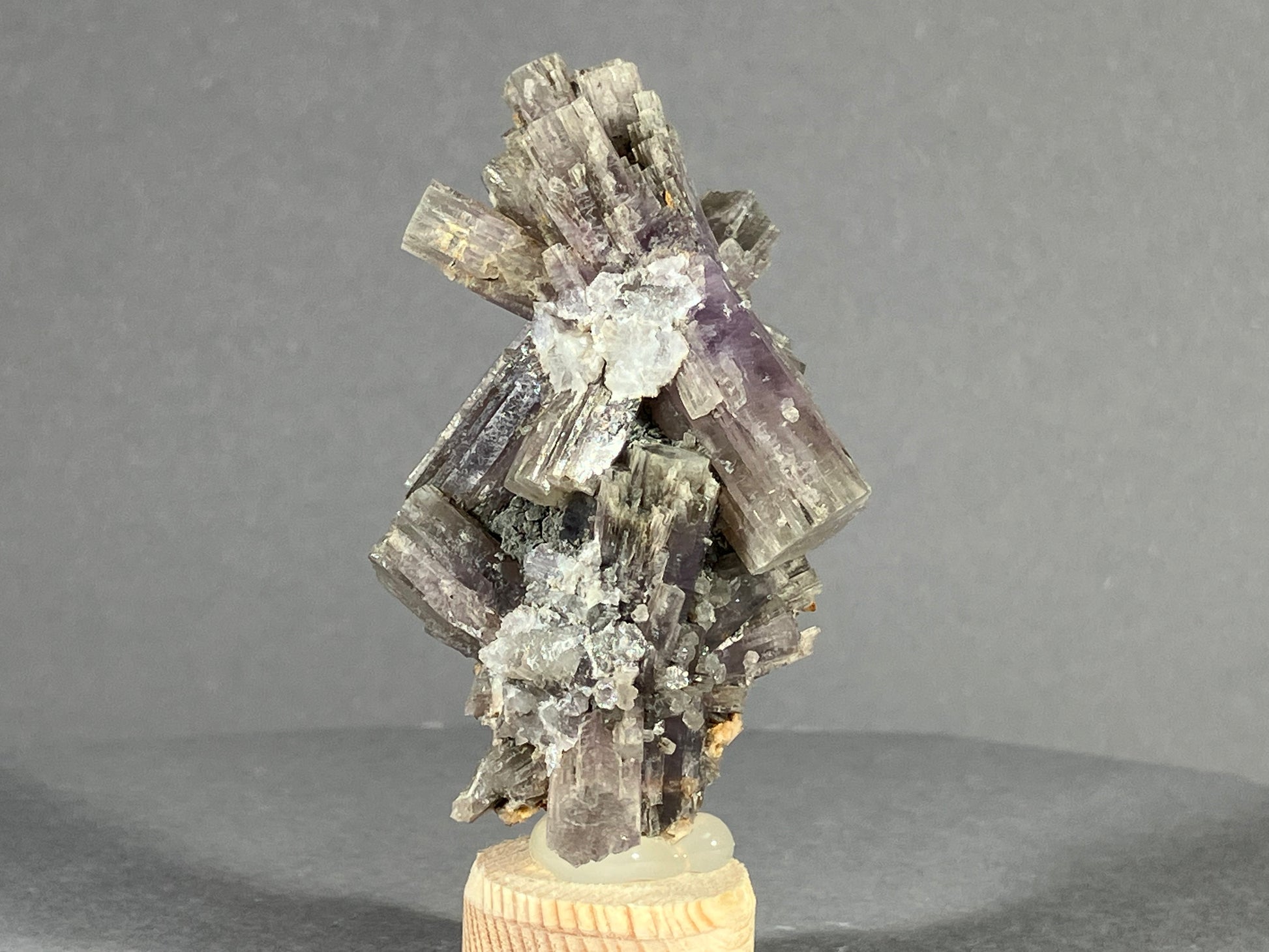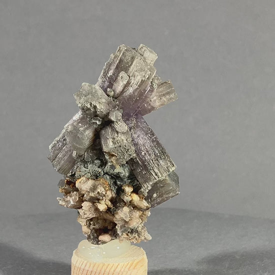 Sehr schöne Gruppe mit teils violetten Aragonitkristallen. (Hauptkristall ca. 3,7cm)