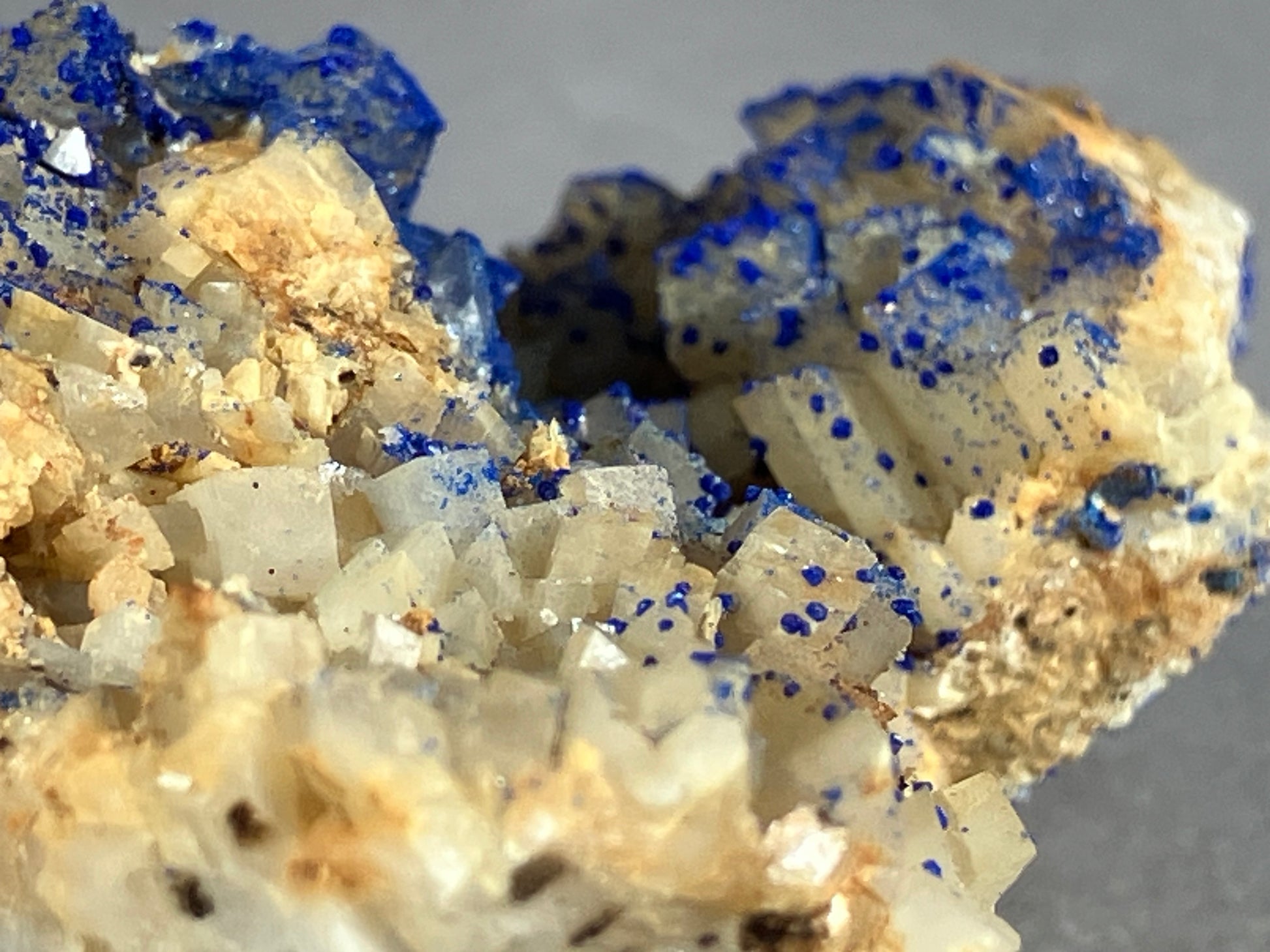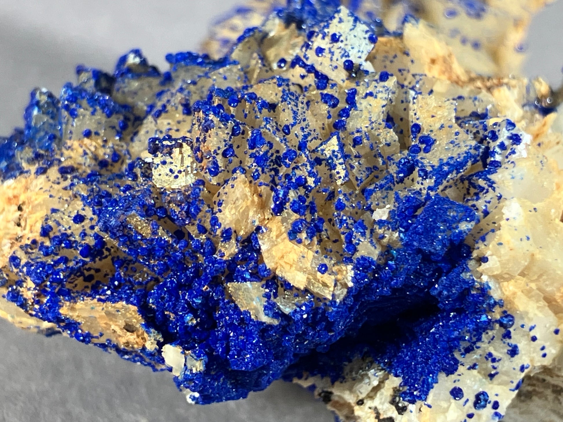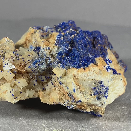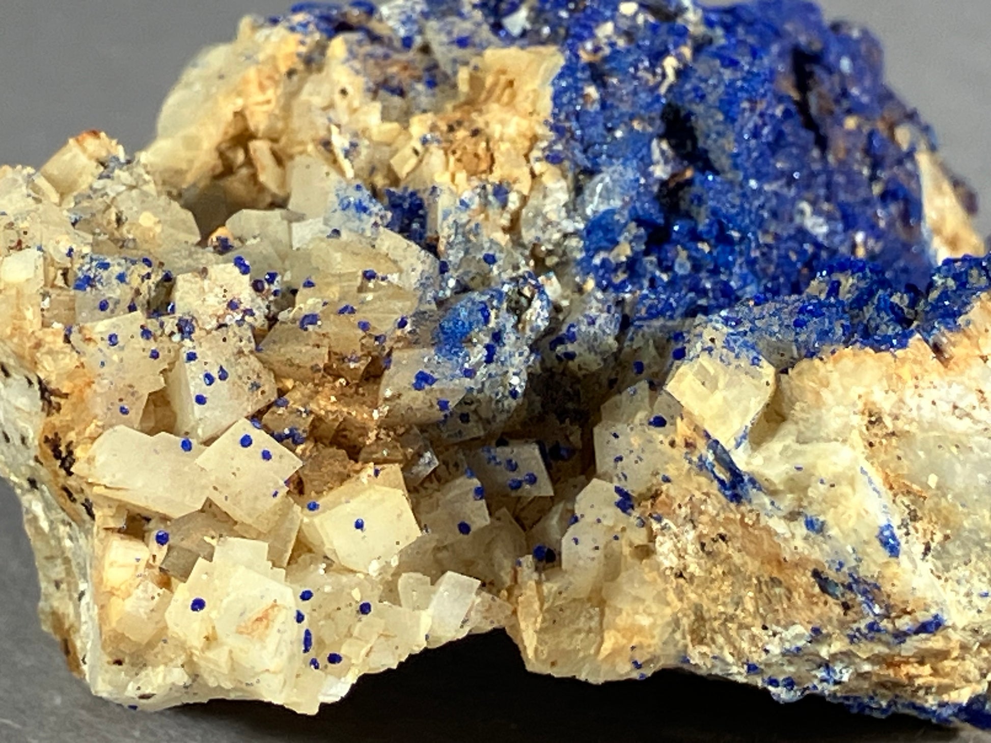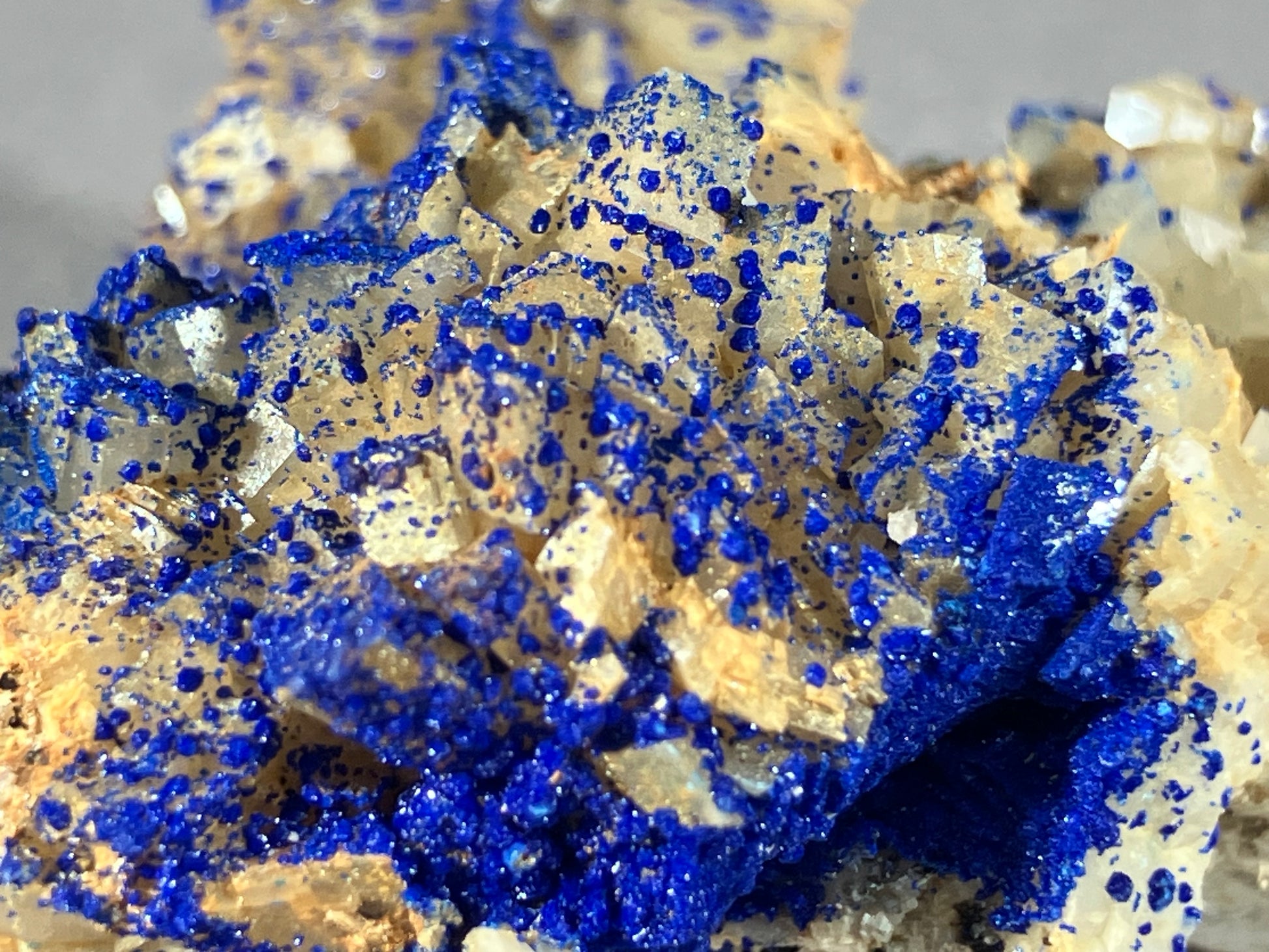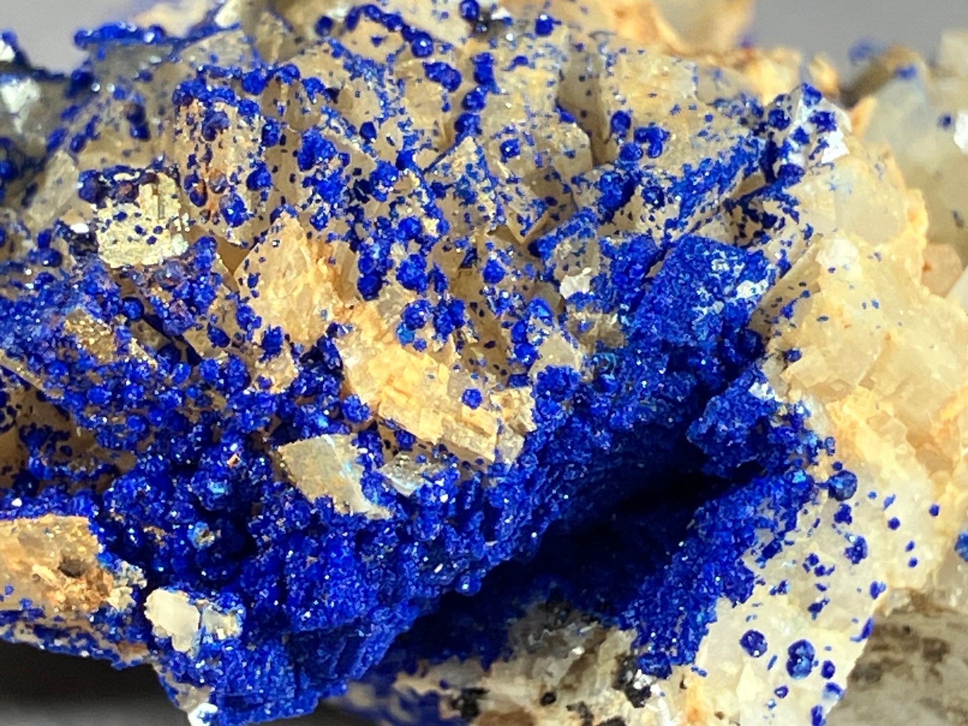 Tiefblauer Azurit auf Dolomitkristallen.