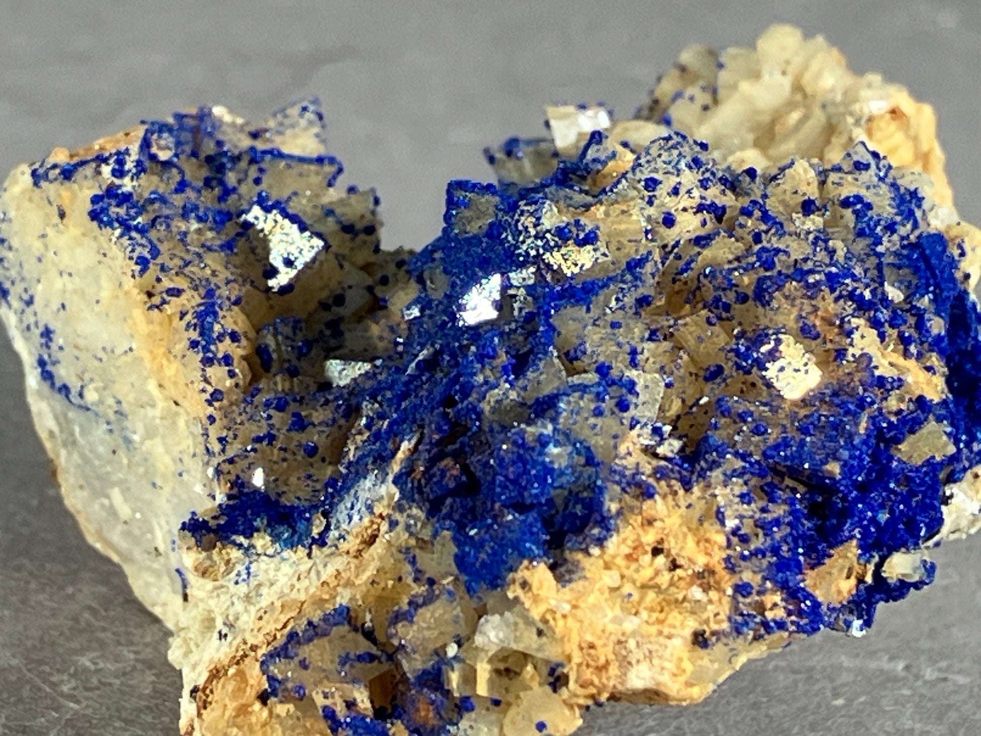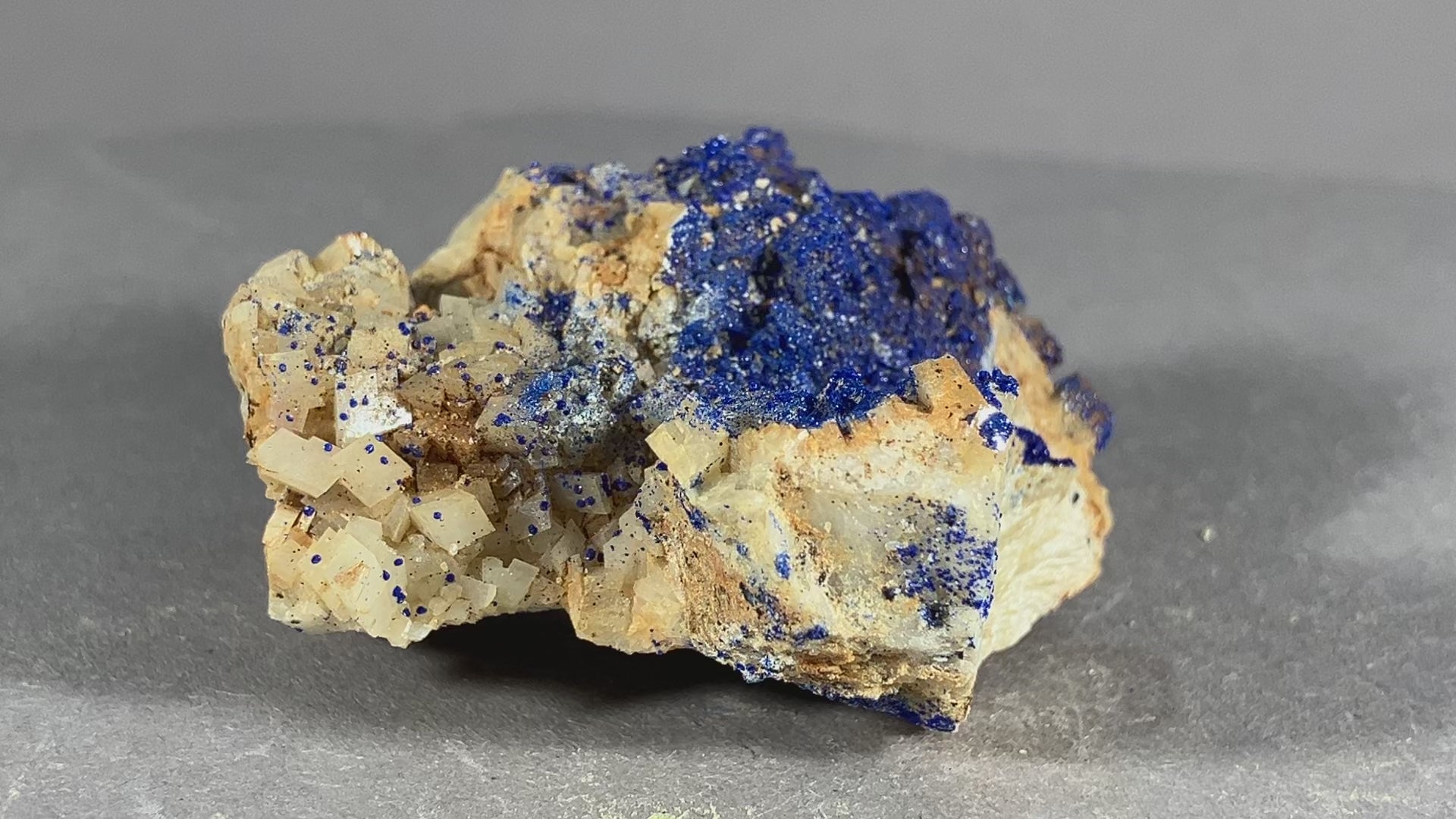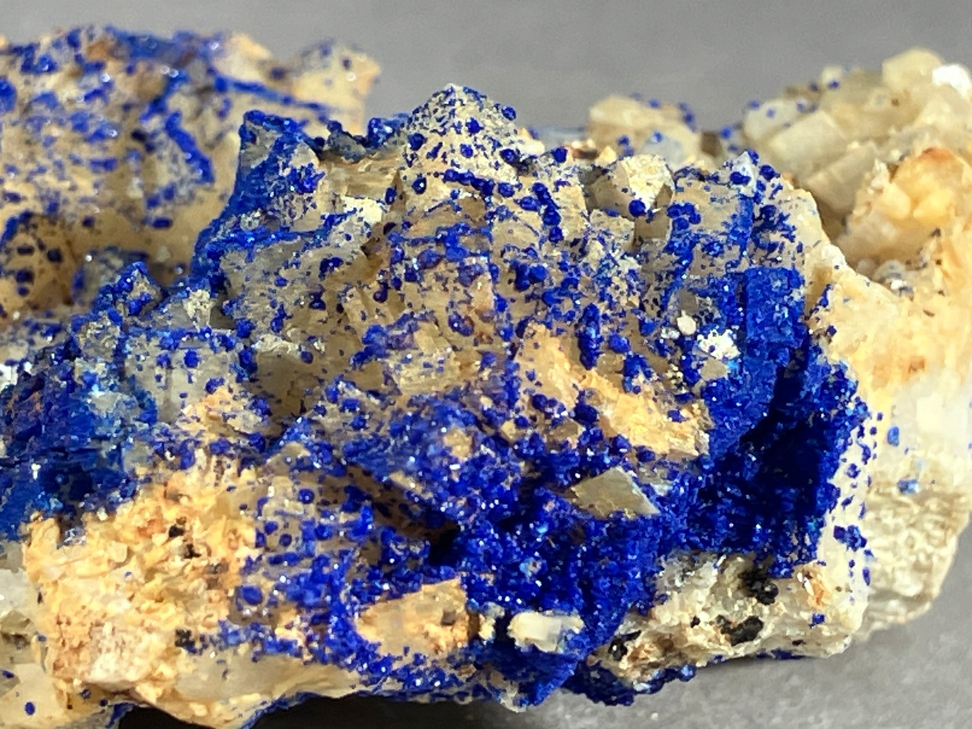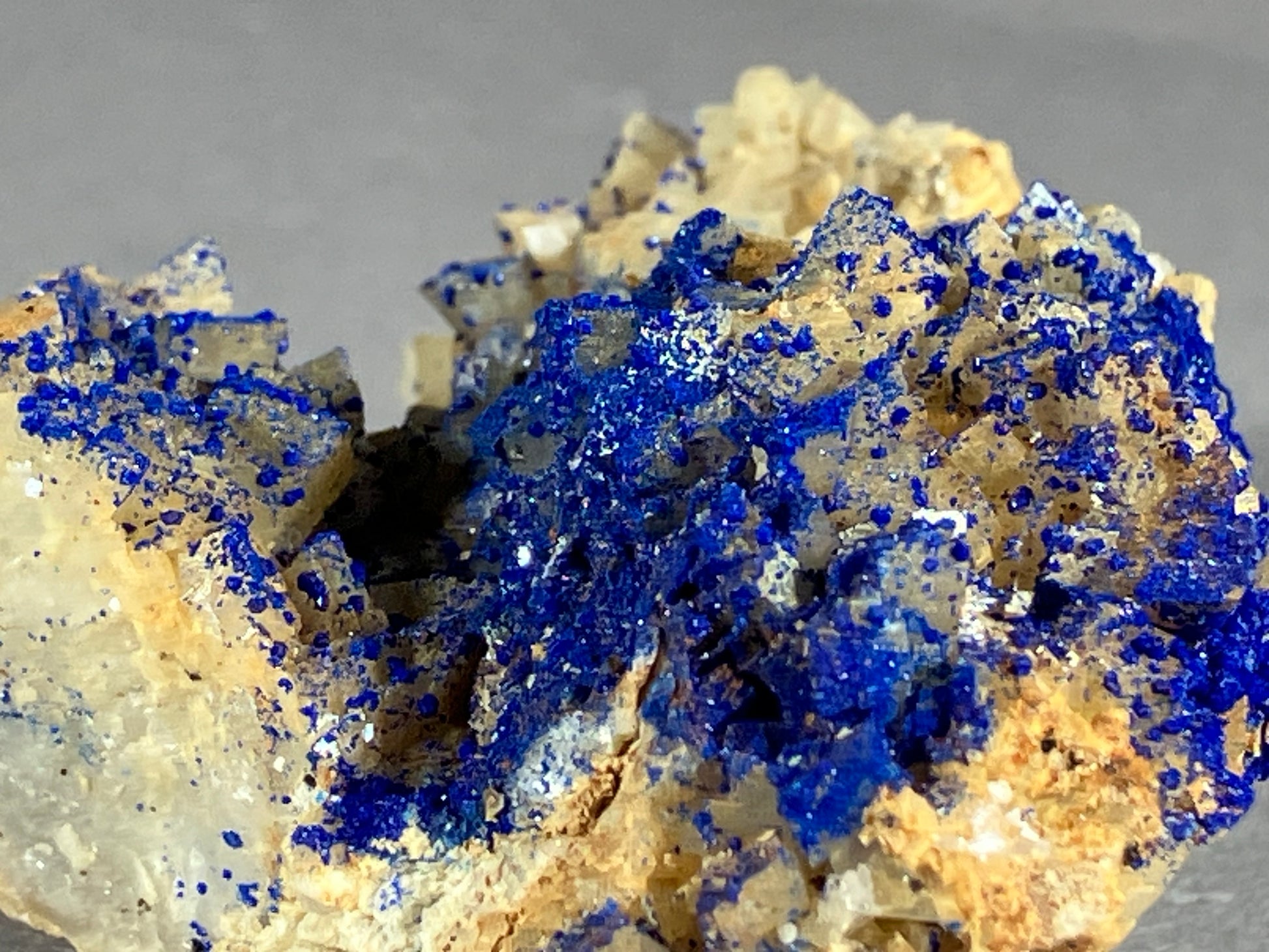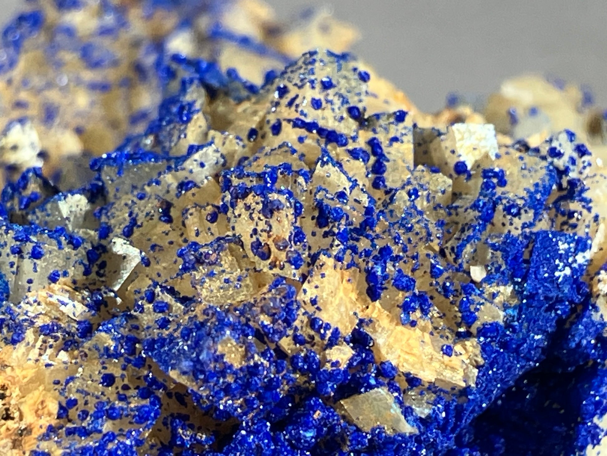 Tiefblauer Azurit auf Dolomitkristallen.