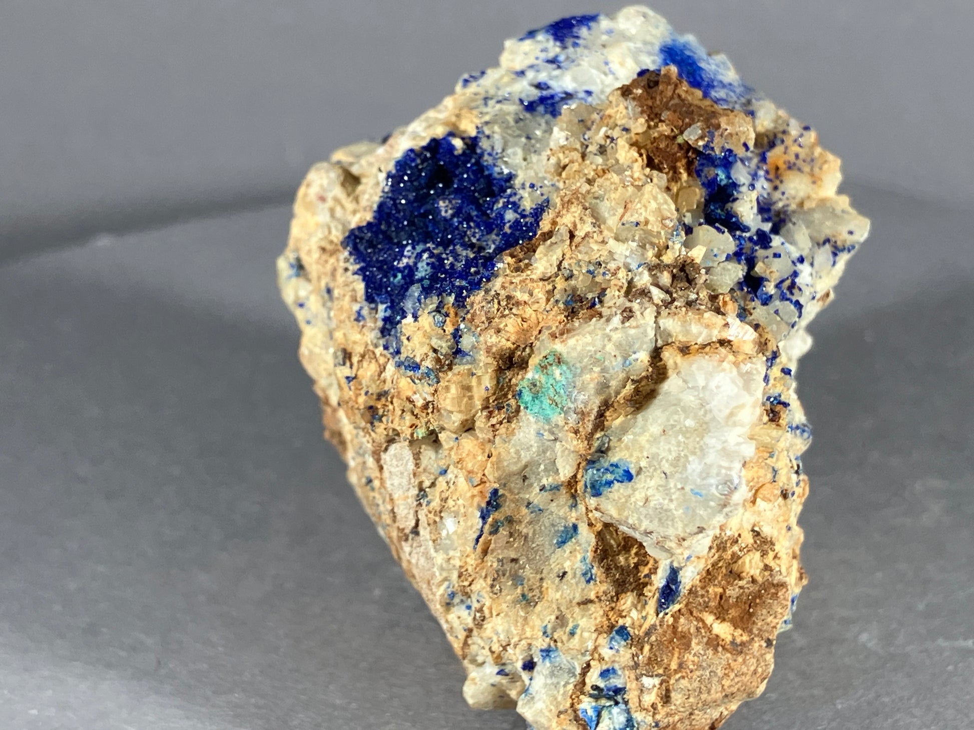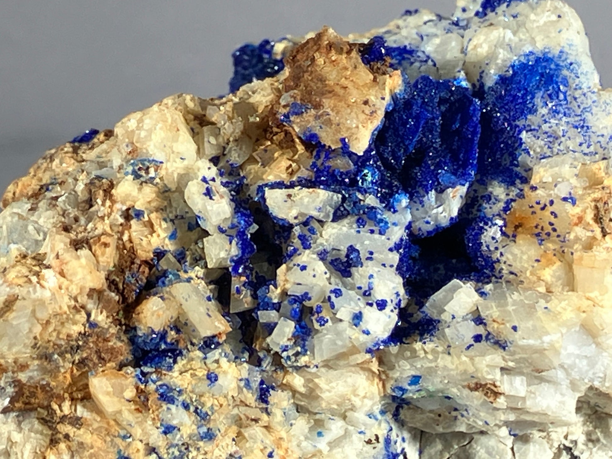 Tiefblauer Azurit auf Dolomitmatrix mit netten Dolomitkristallen.