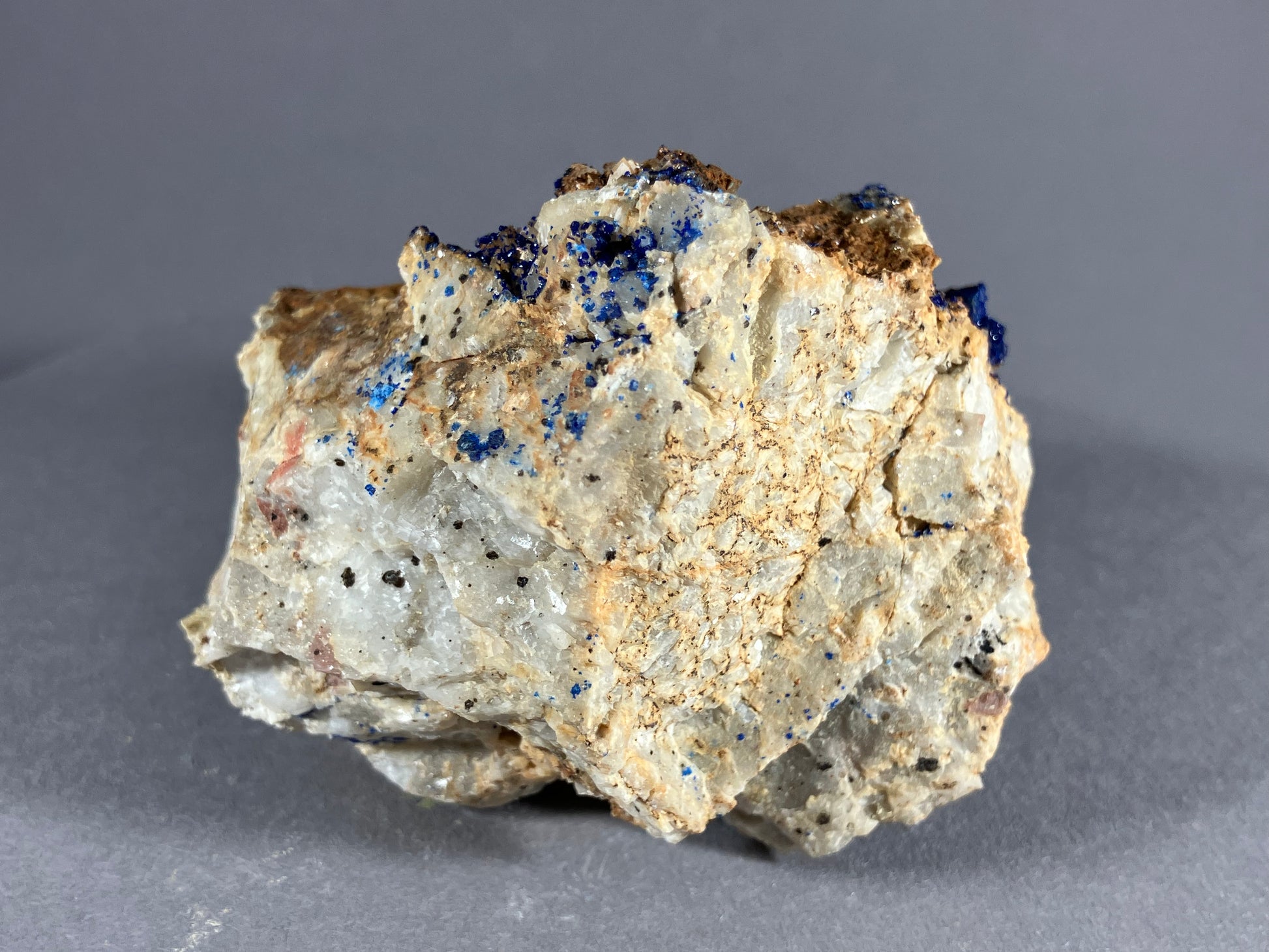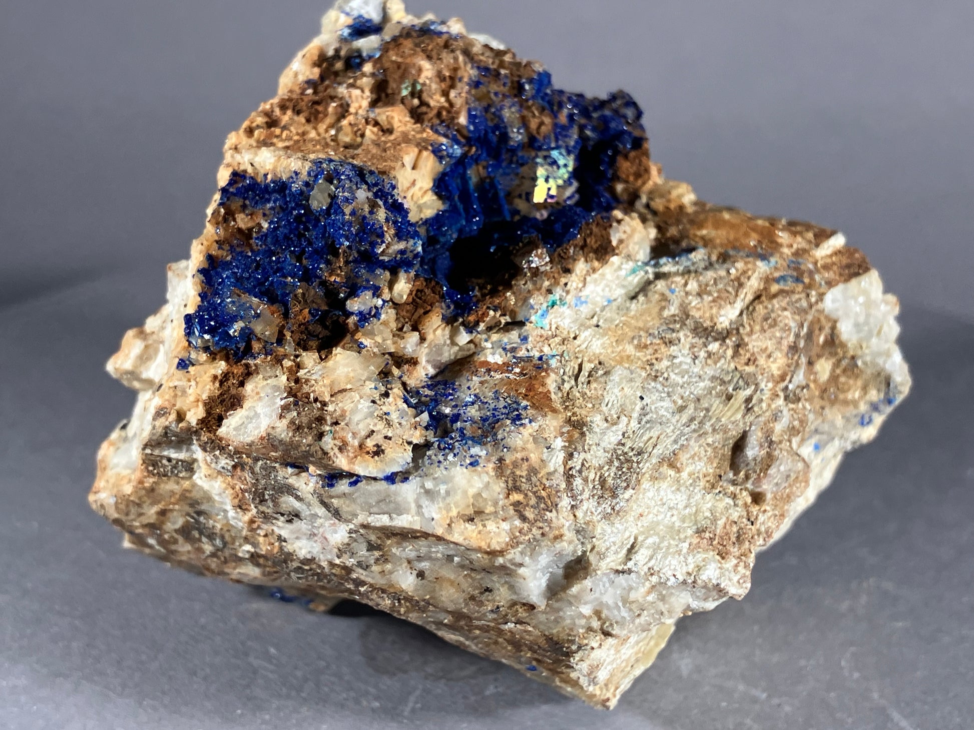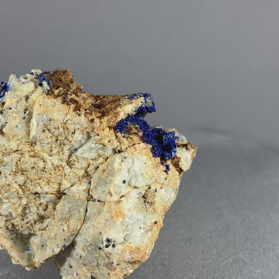 Tiefblauer Azurit auf Dolomitmatrix mit netten Dolomitkristallen.