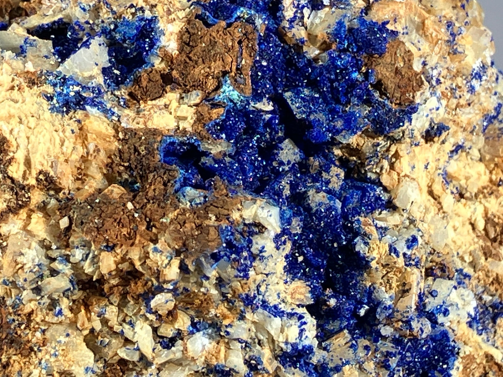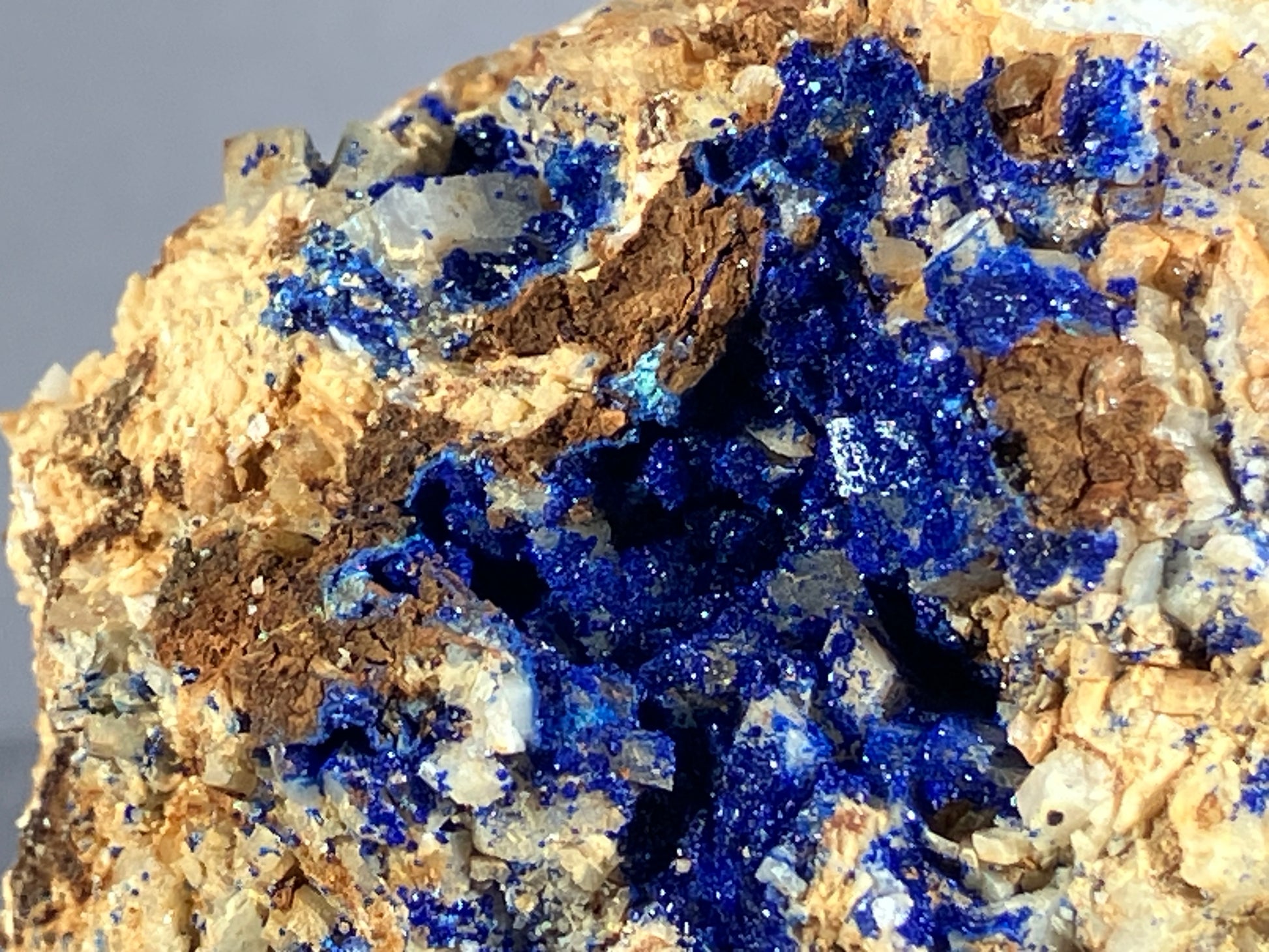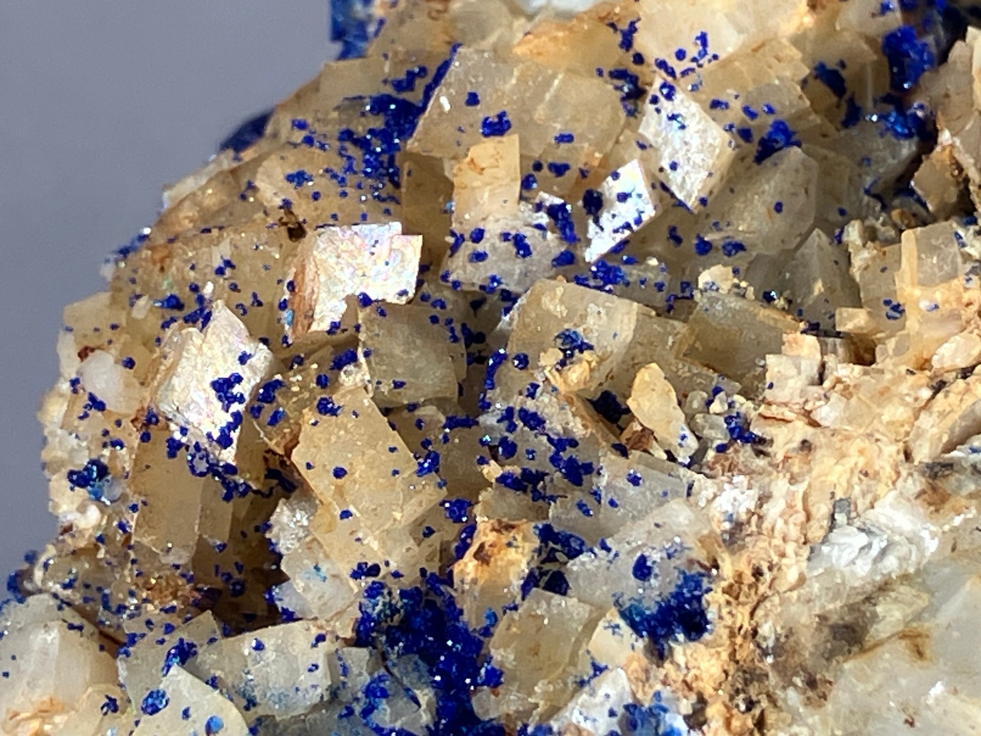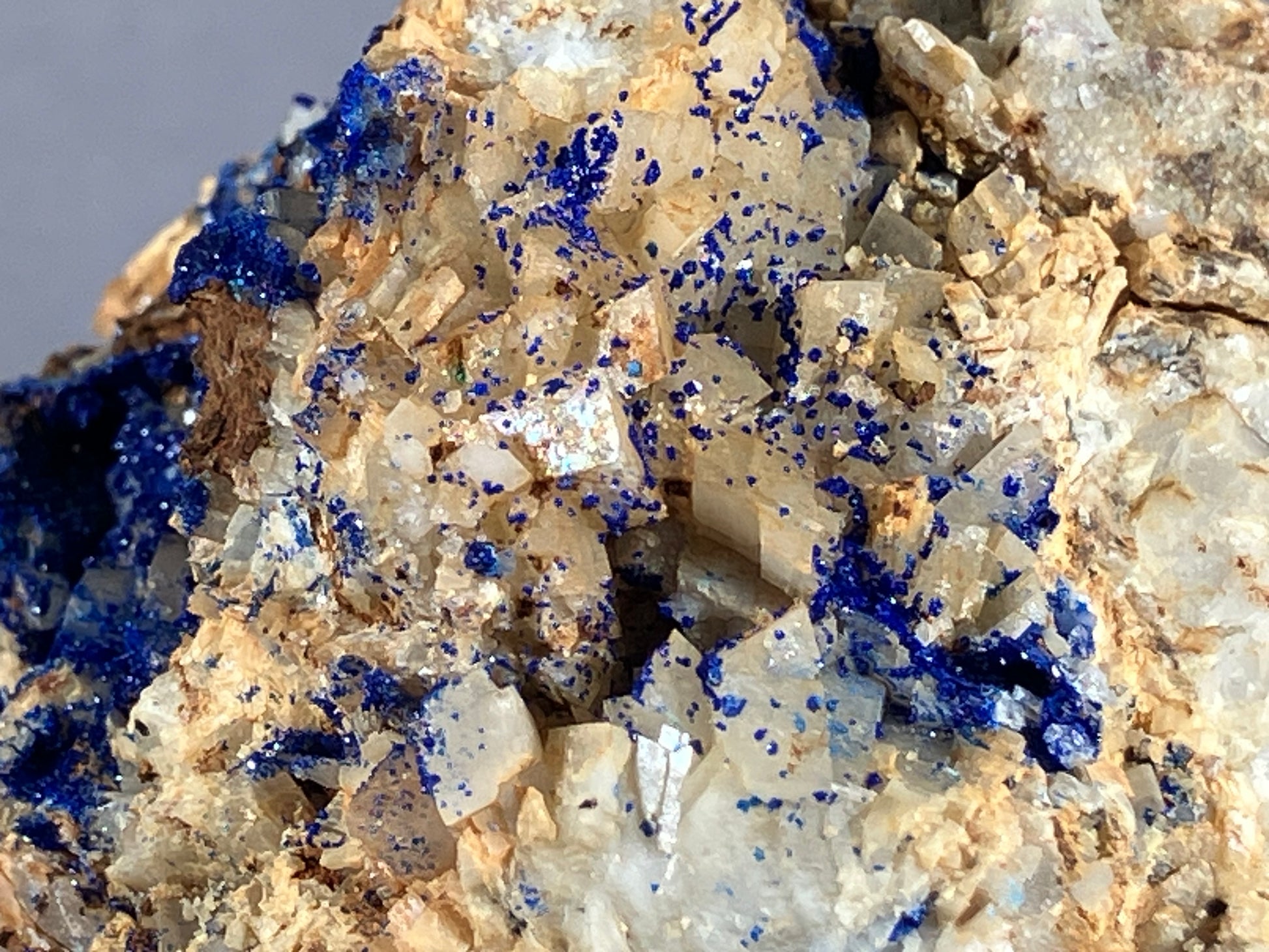 Tiefblauer Azurit auf Dolomitkristallen.