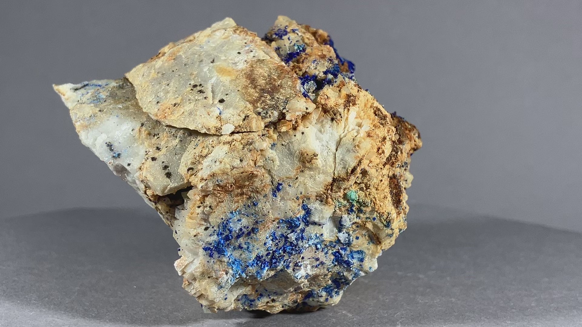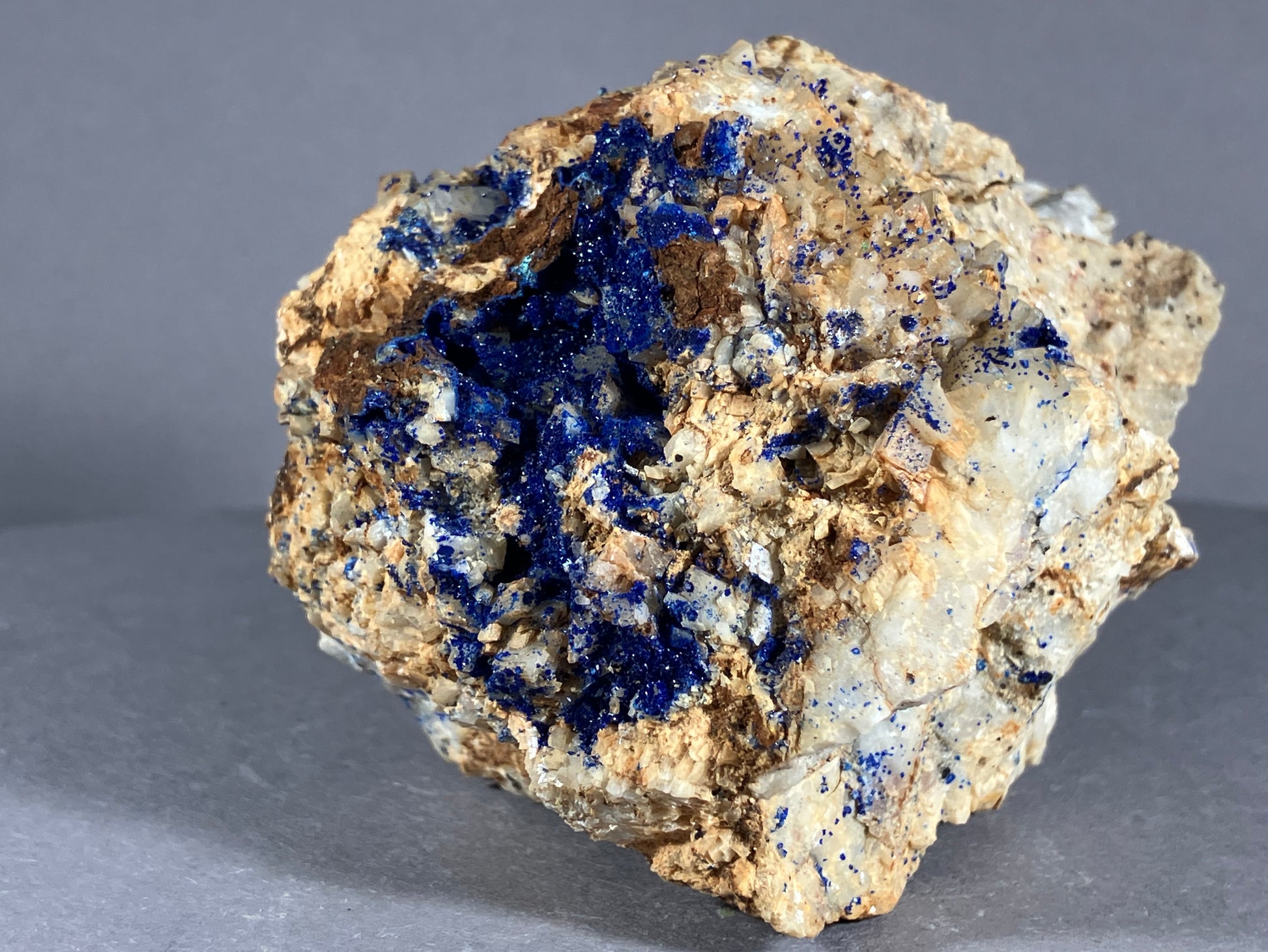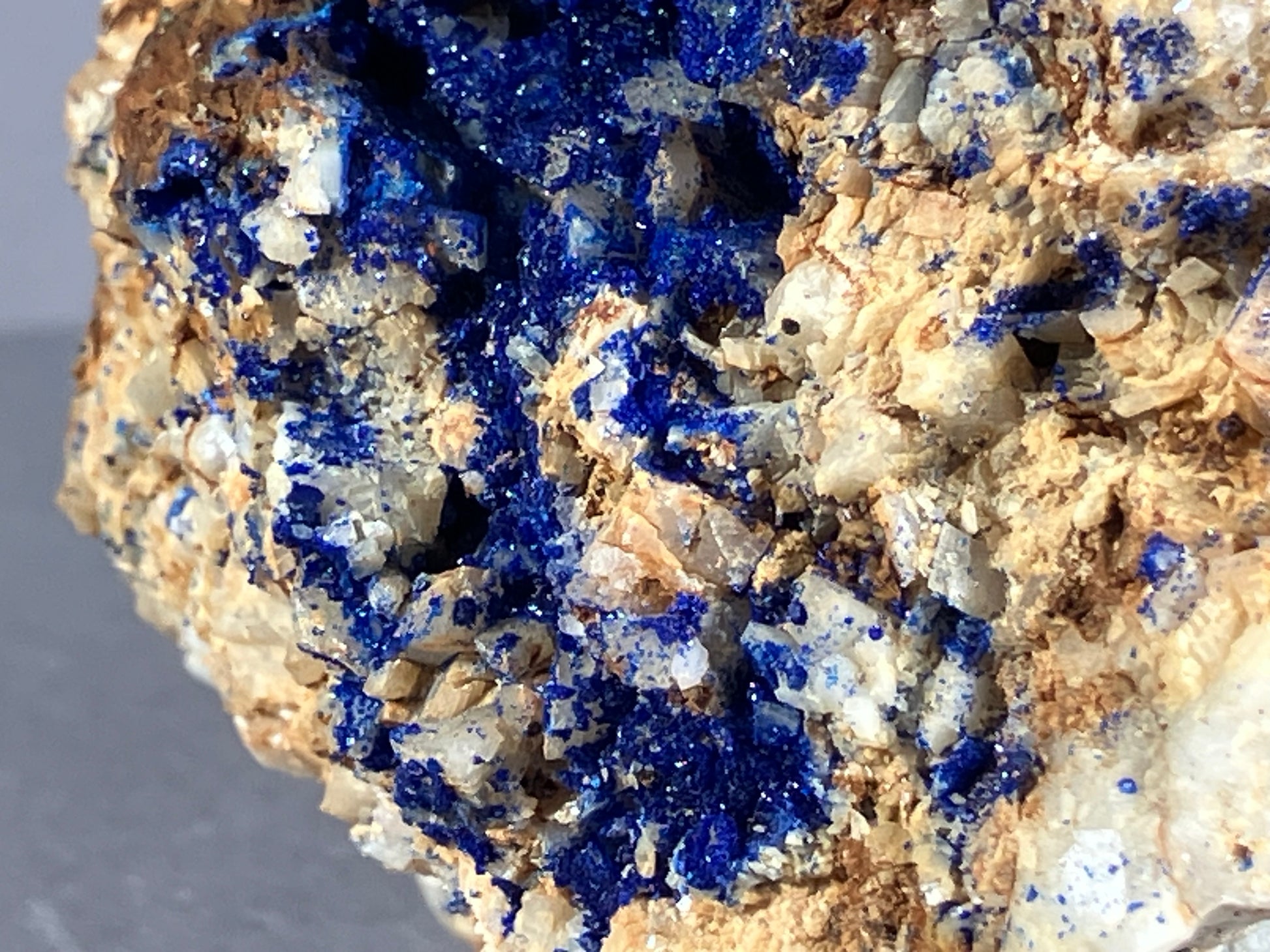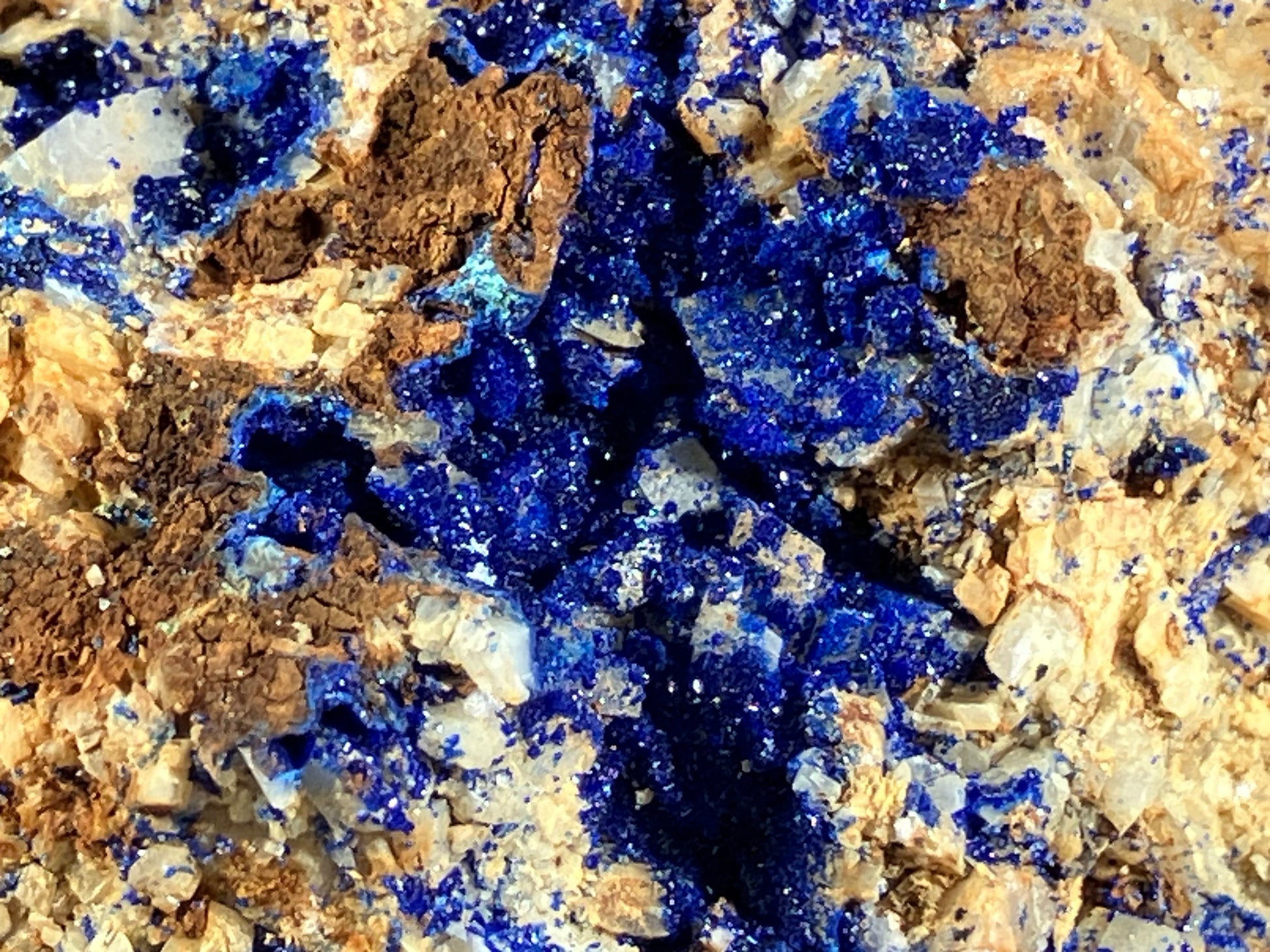 Tiefblauer Azurit auf Dolomitkristallen.