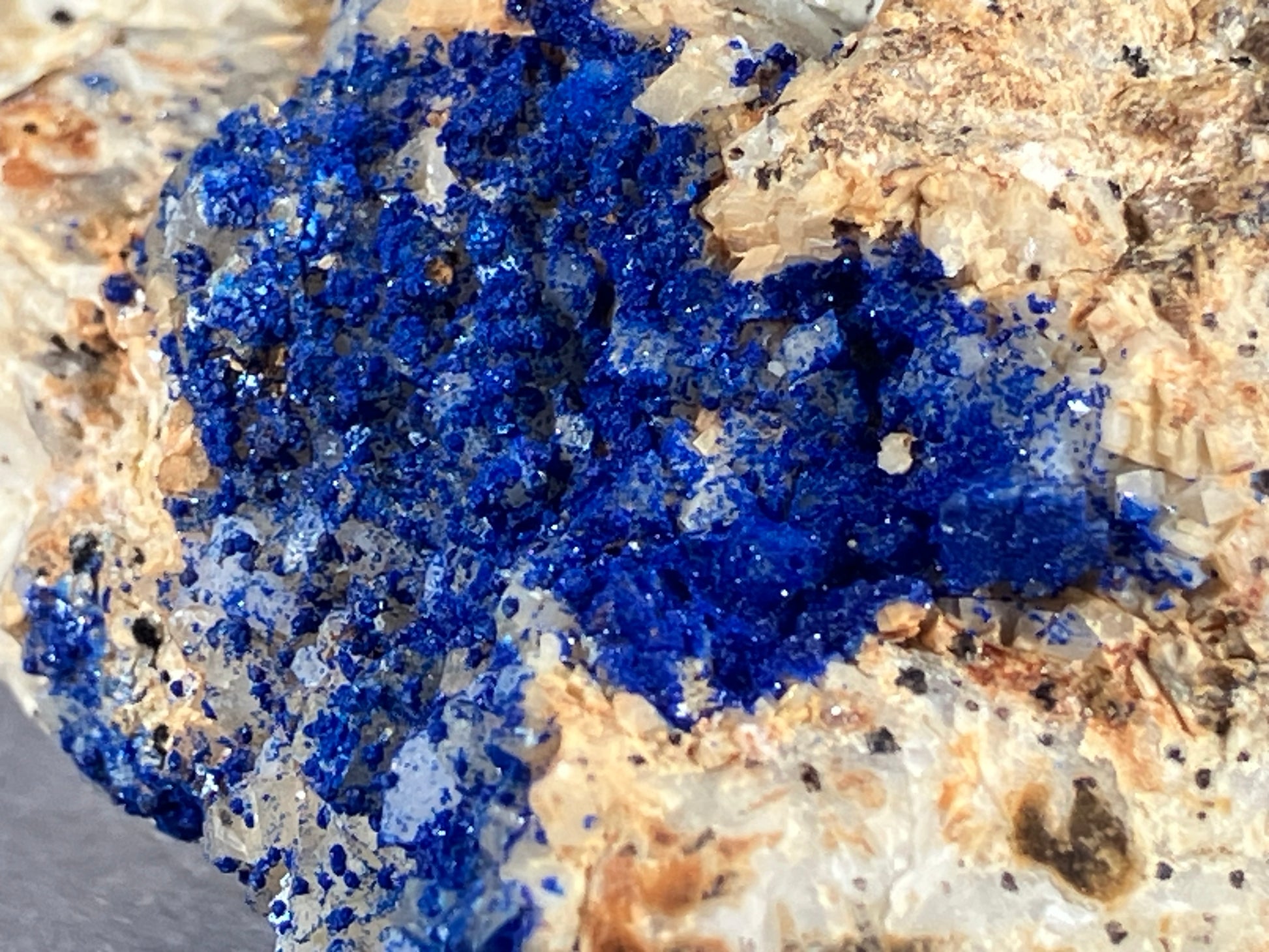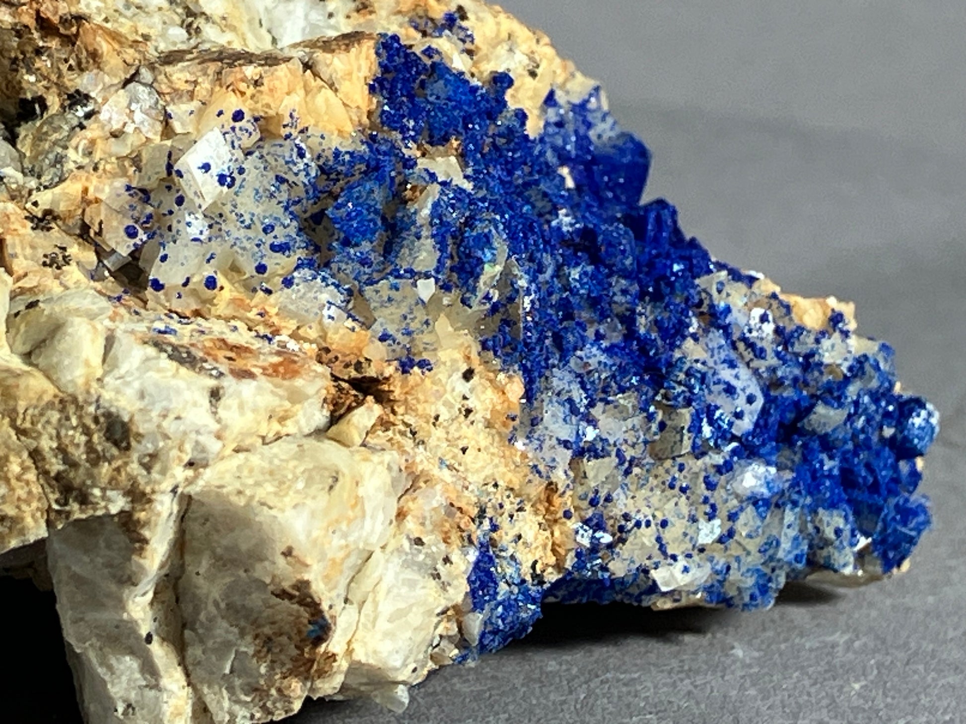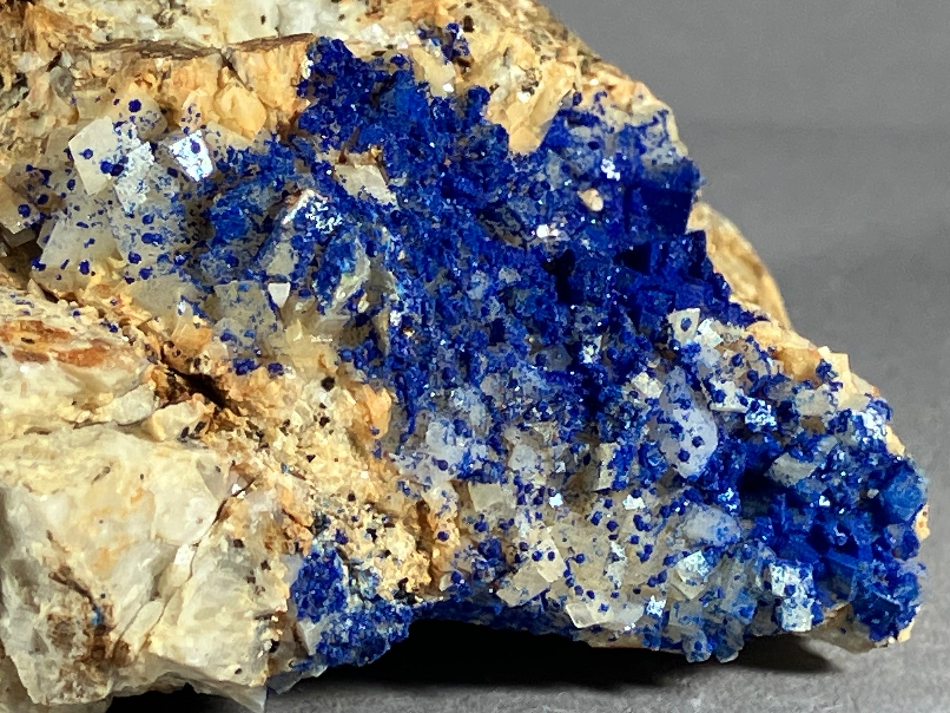 Tiefblauer Azurit auf Dolomitkristallen.