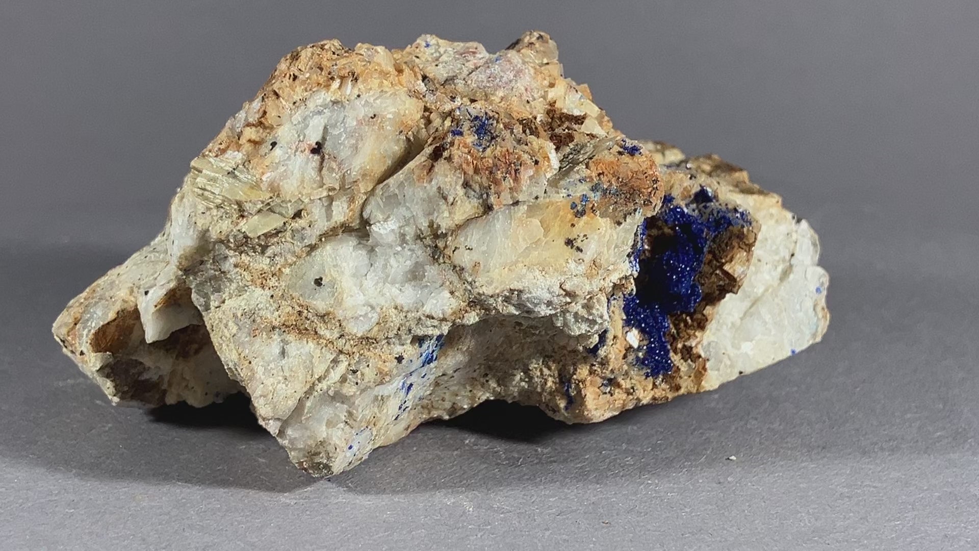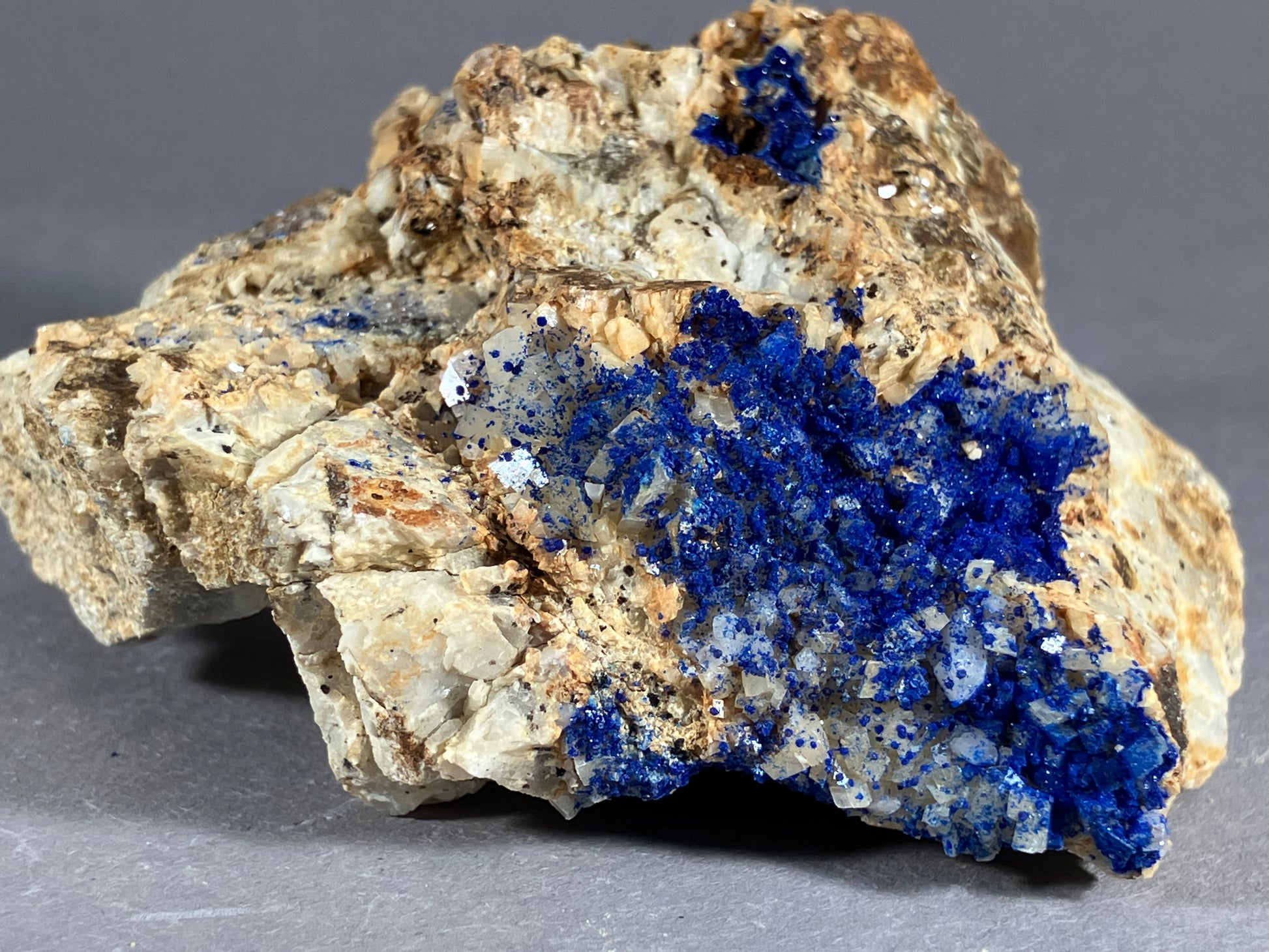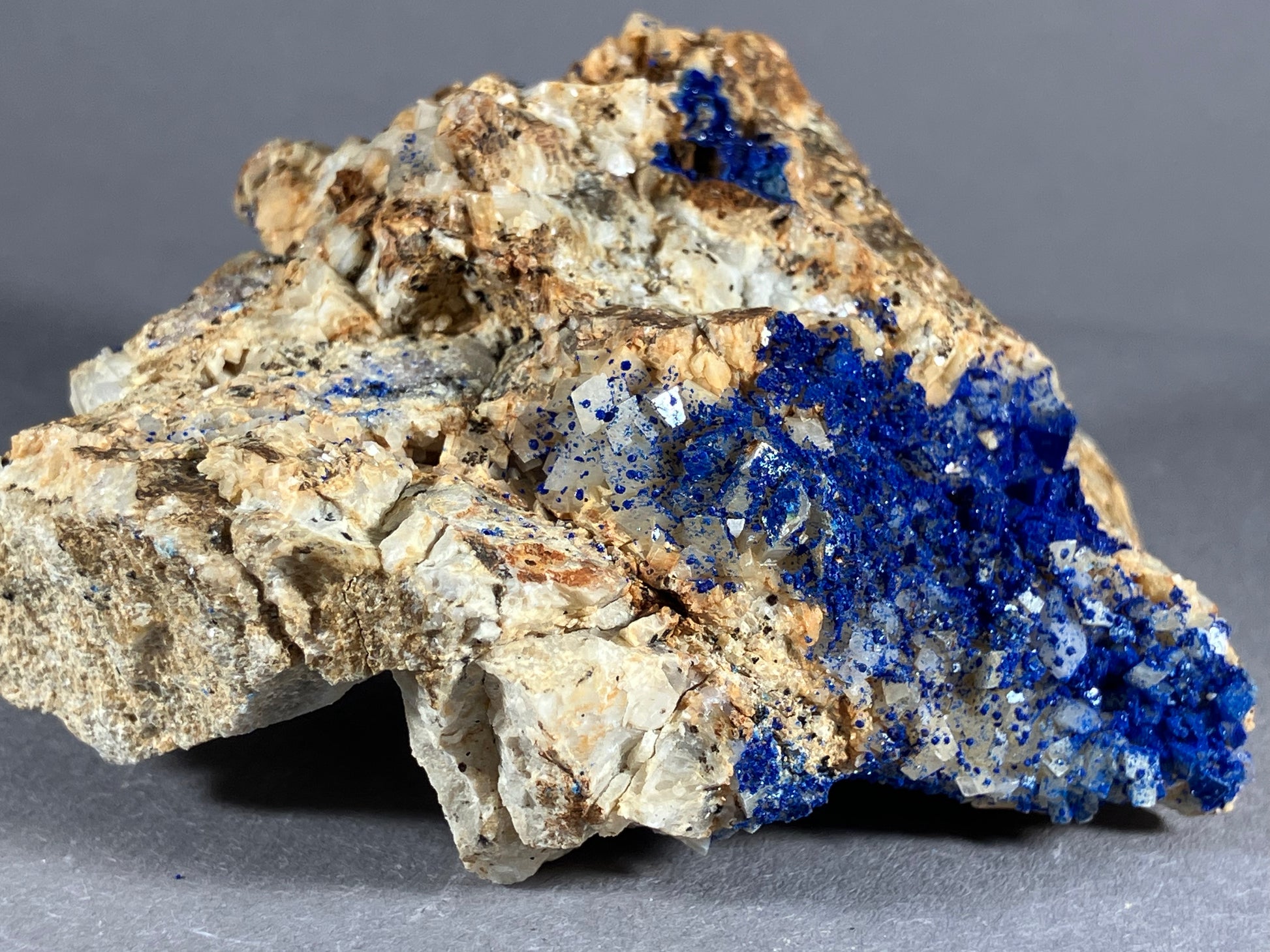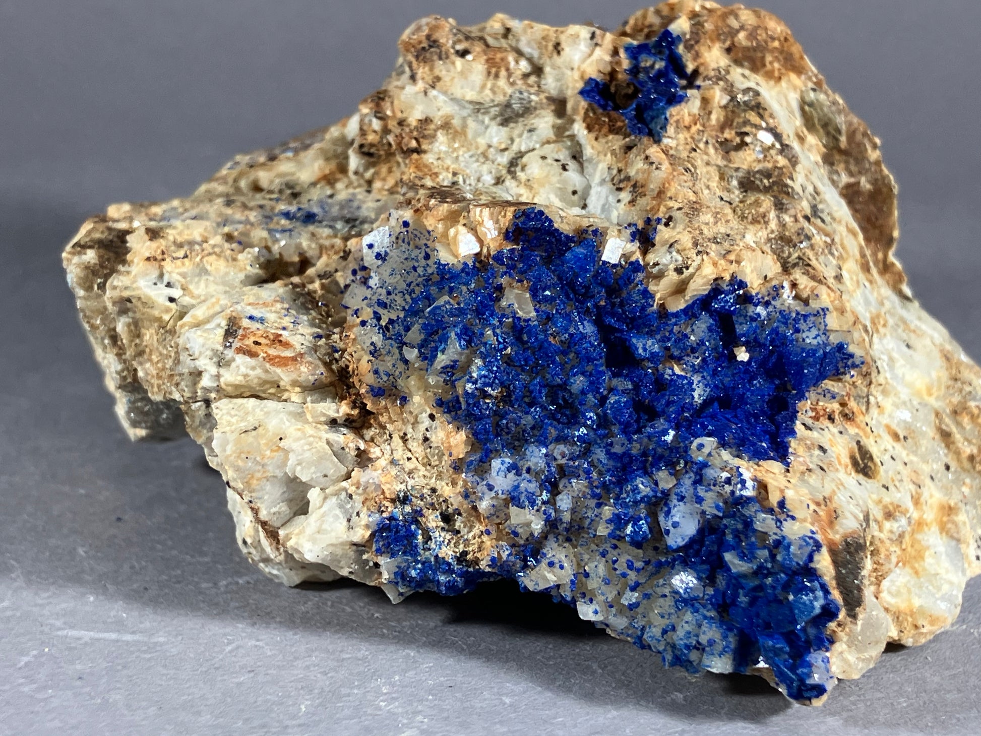 Tiefblauer Azurit auf Dolomitkristallen.