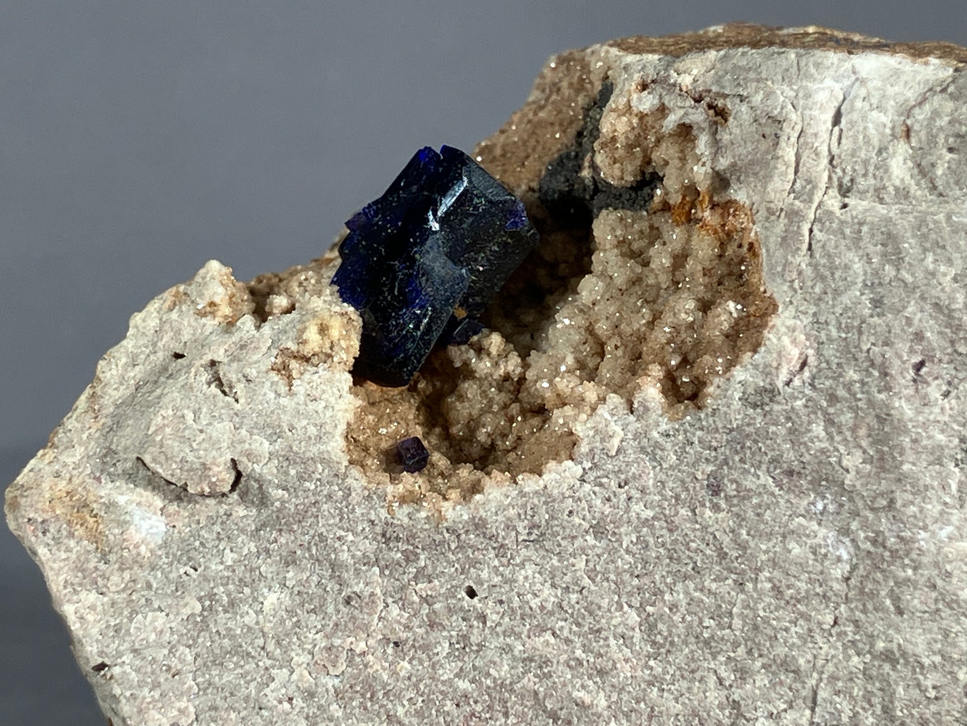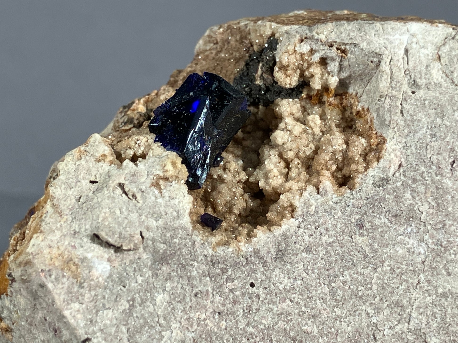 Tiefblaue sehr schöne Azuritkristalle auf Matrix.