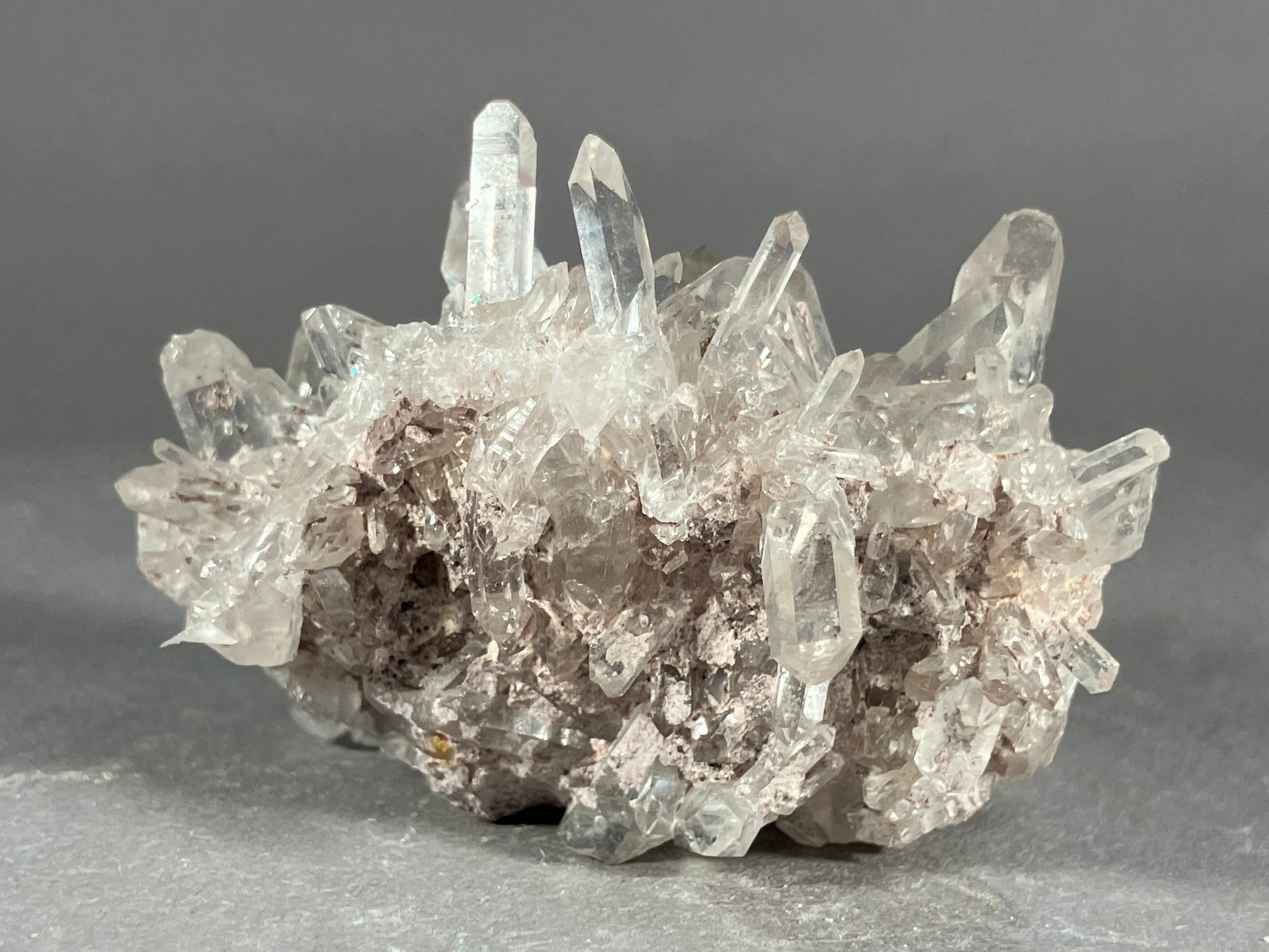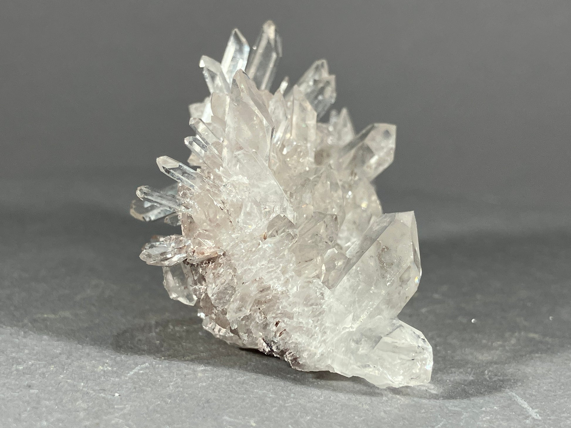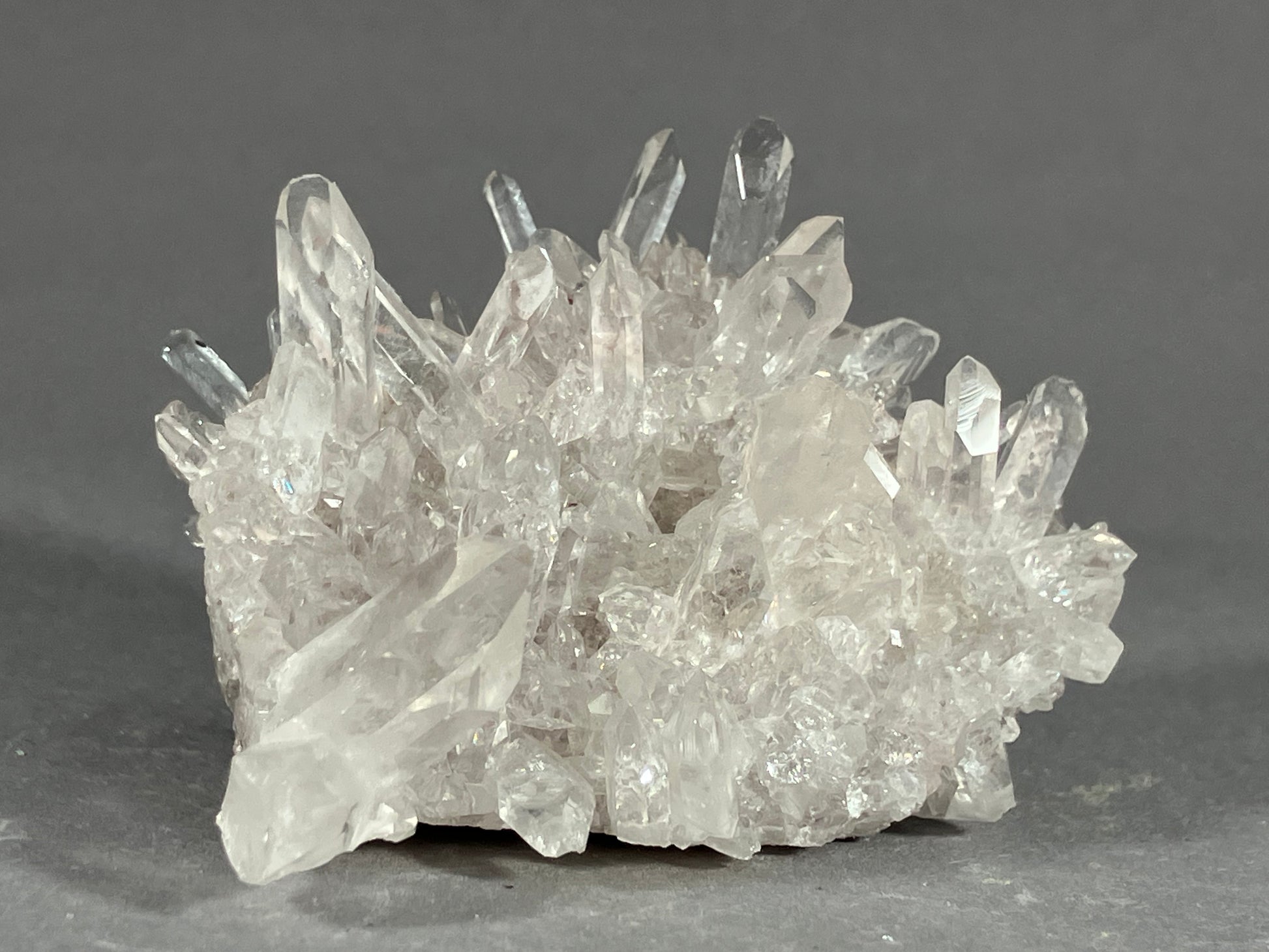 Wasserklare Bergkristalle als unübertrefflich schön gewachsene Stufe.
