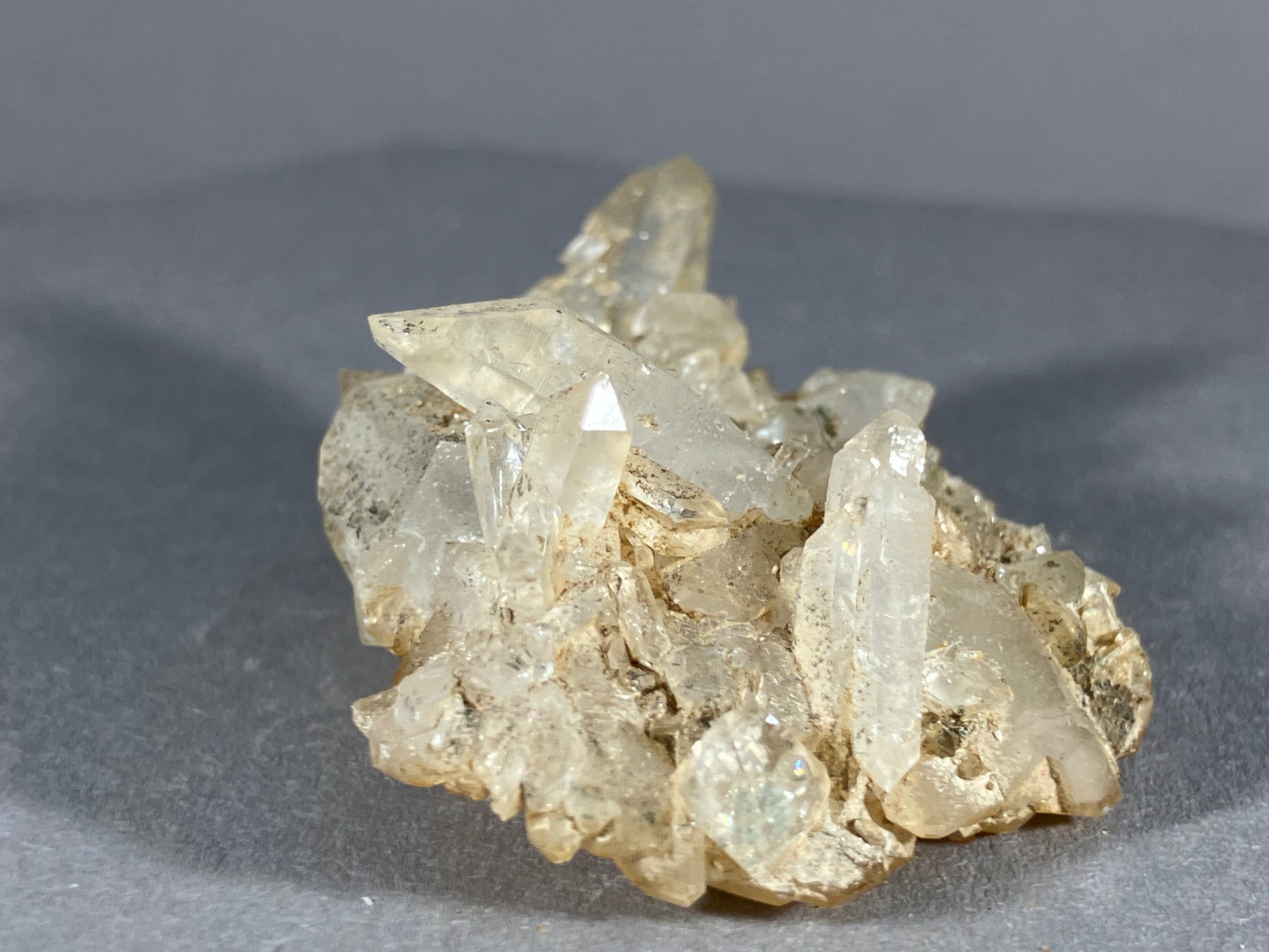 Schöne Schwimmerstufe, rundherum auskristallisiert, Rückseite komplett verzogene Kristalle (siehe Bild)