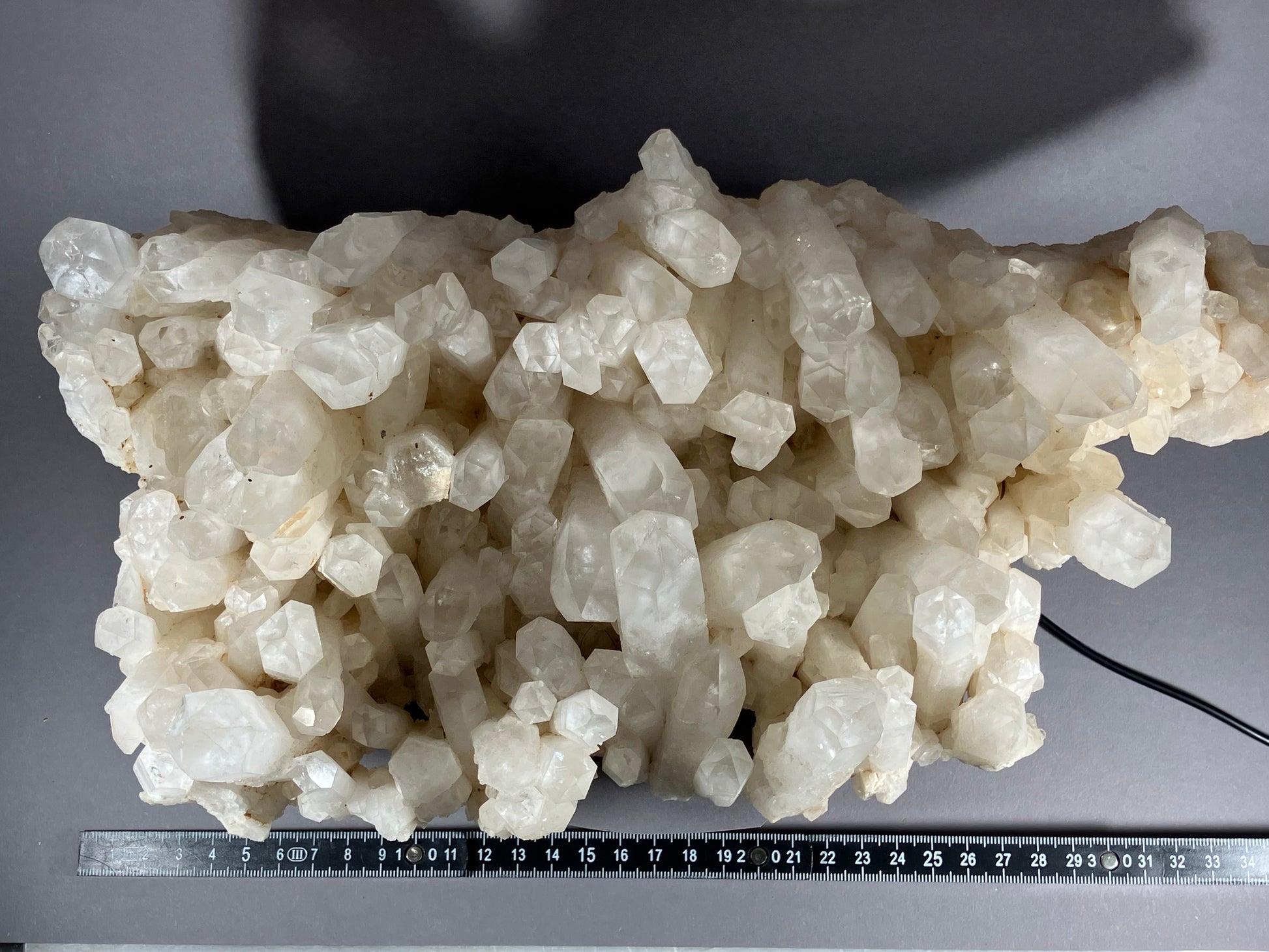 Riesige wunderschöne Bergkristallstufe mit zahlreichen an der Spitze teils klaren Kristallen.