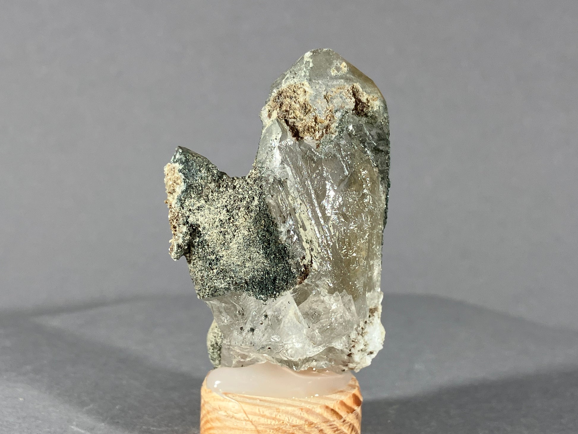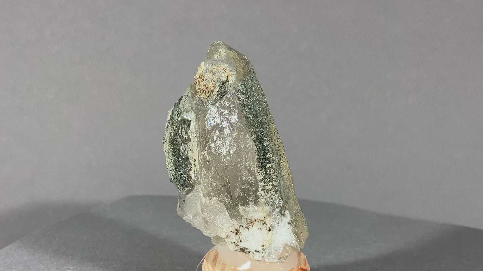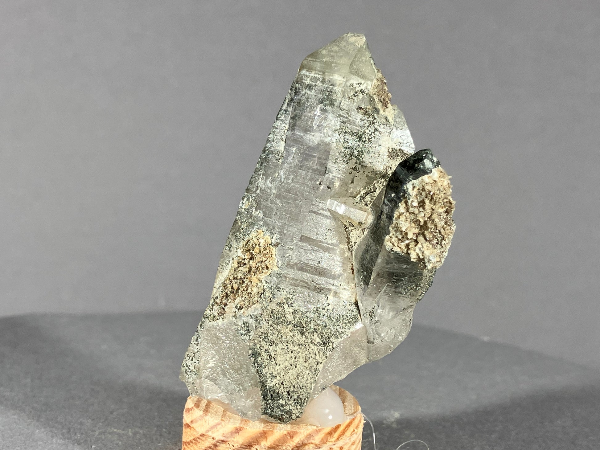 Nette kleine Bergkristallstufe mit teilweise Chloriteinschlüssen.