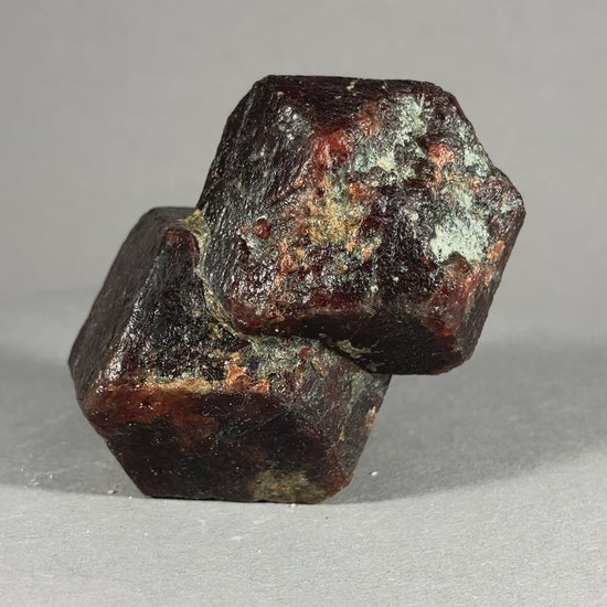 Granatkristallstufe bestehend aus zwei ineinander verwachsenen Kristallen.