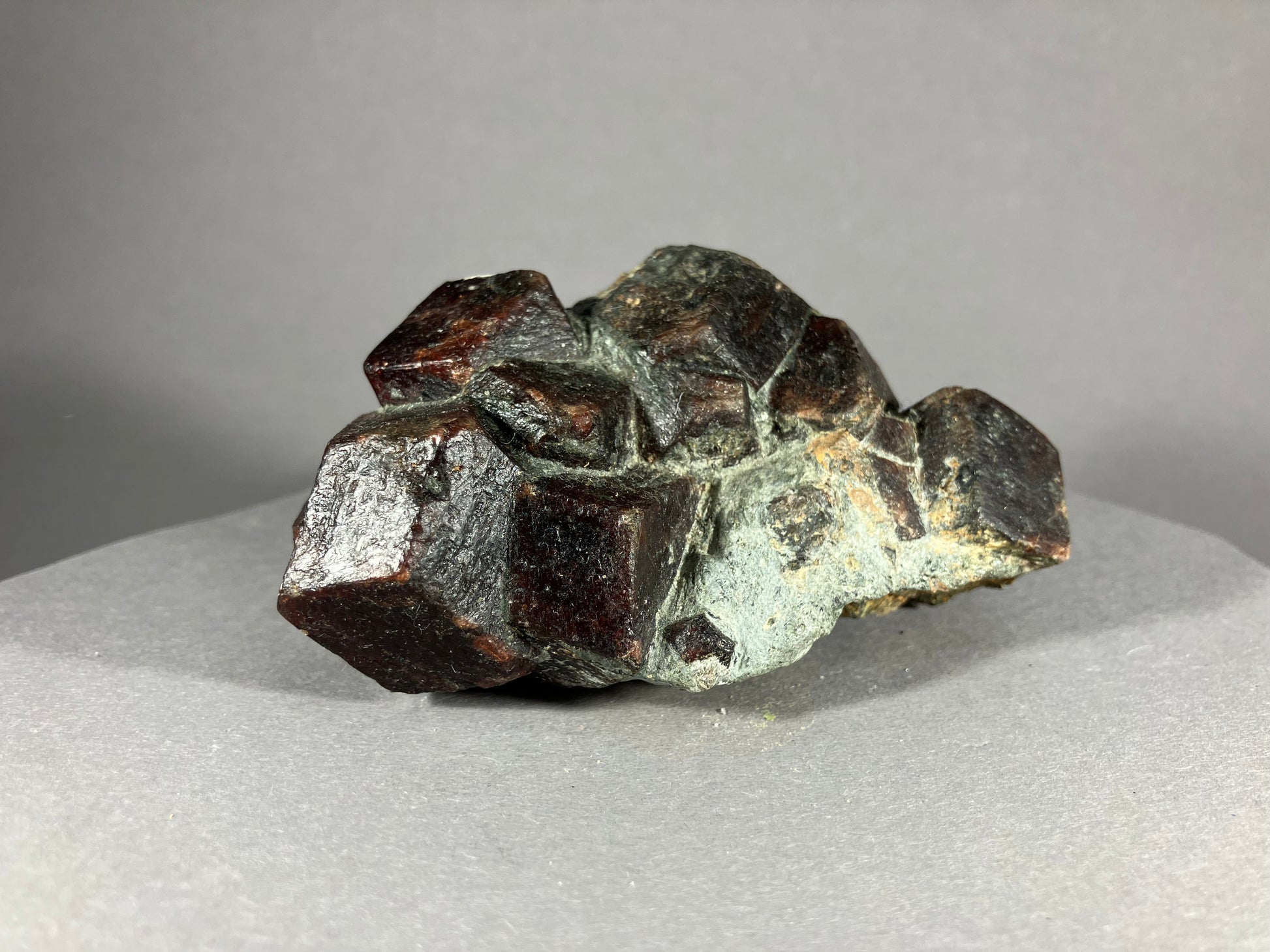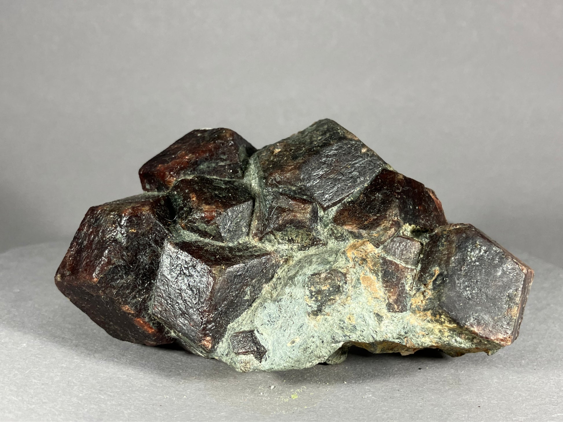 schöne zu einer netten Gruppe gewachsene Gruppe Granatkristalle.