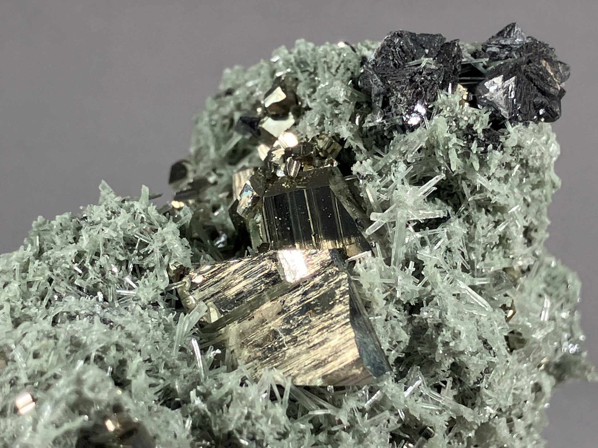 Pyrit/Nadelquarz/Bleiglanz - Madan ca. 6,5x5cm
