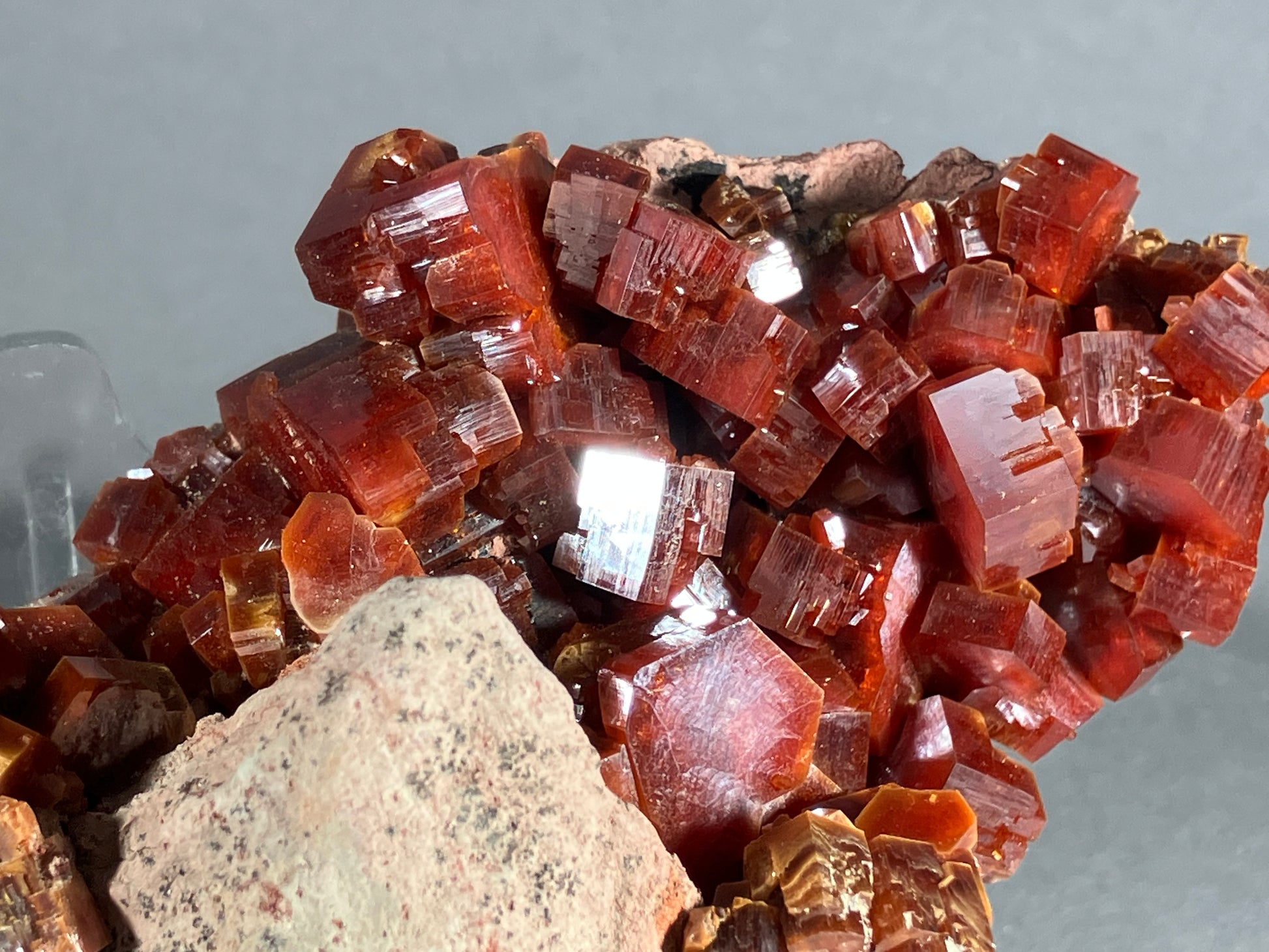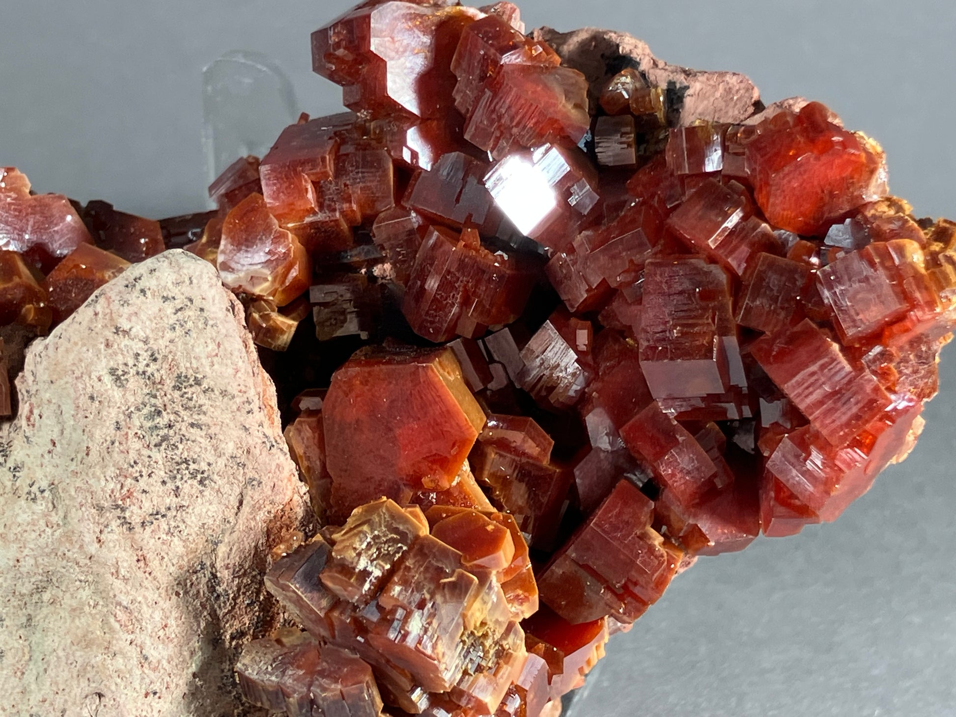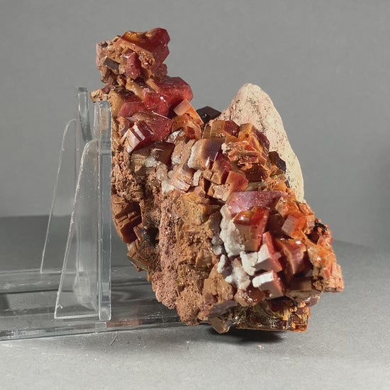 Absolut traumhafte und wunderschöne tiefrote und richtig dicke Vanadinitkristalle auf Sandsteinmatrix. Perfekt gewachsen auf der Sandsteinmatrix.