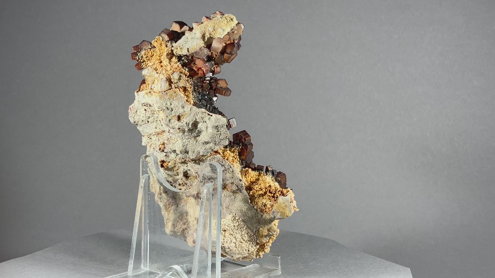 Traumhafte und wunderschöne tiefrote Vanadinitkristalle sitzen perfekt gewachsen auf der Matrix.