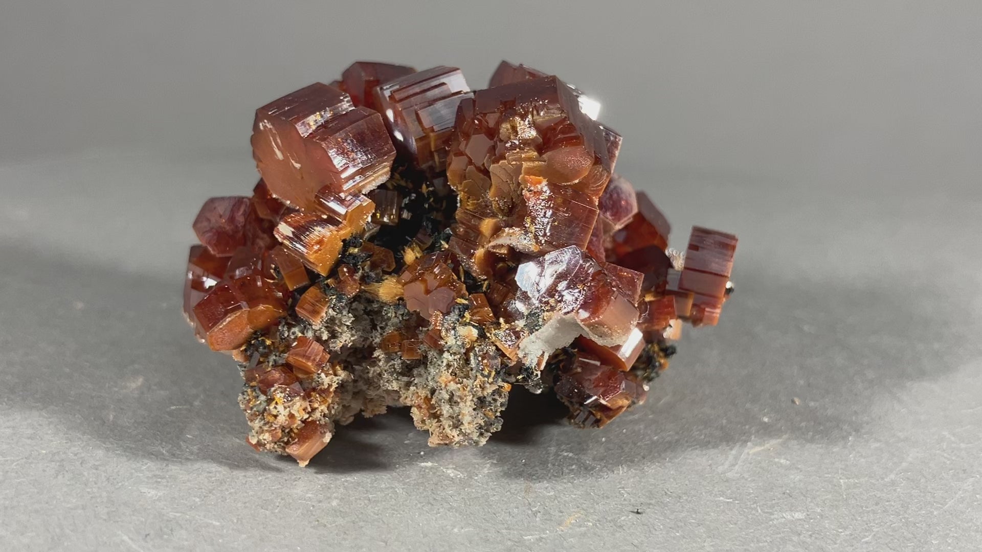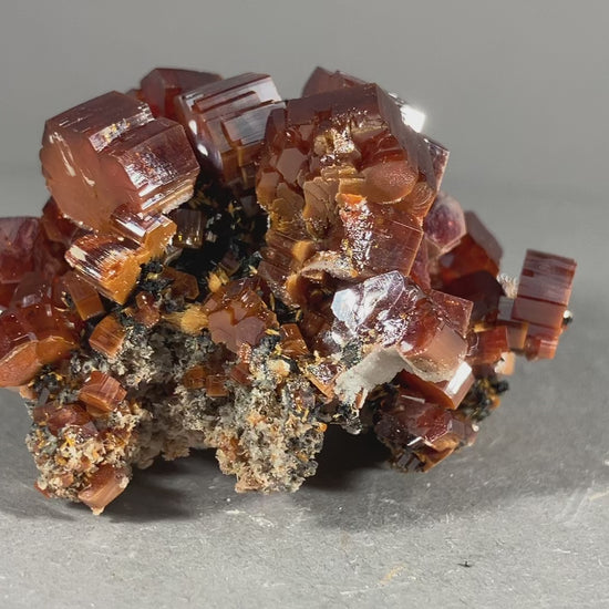 Kleinere aber dafür trotzdem wunderschöne tiefrote Vanadinitkristalle auf Sandsteinmatrix. Perfekt gewachsen auf der Sandsteinmatrix.