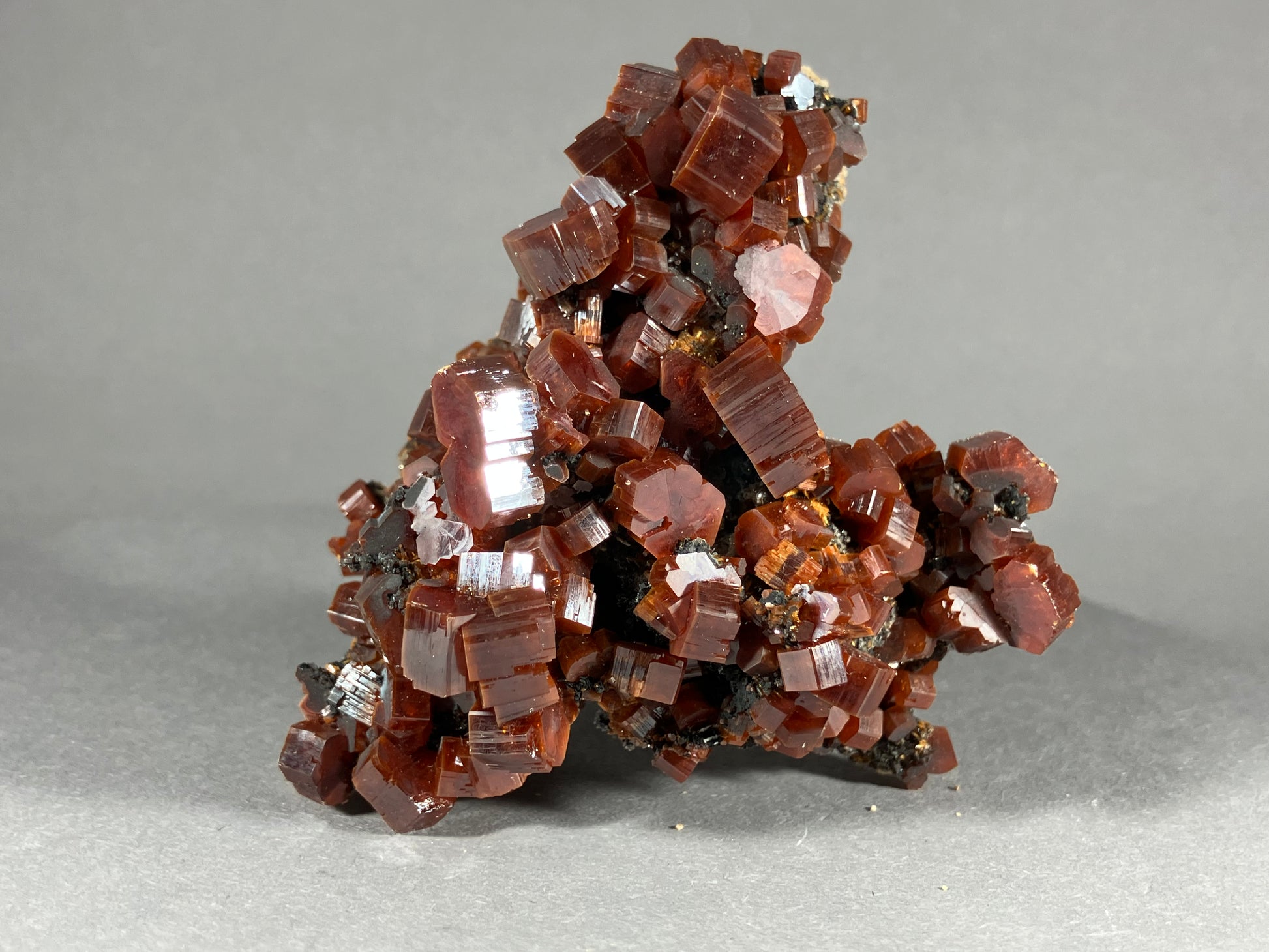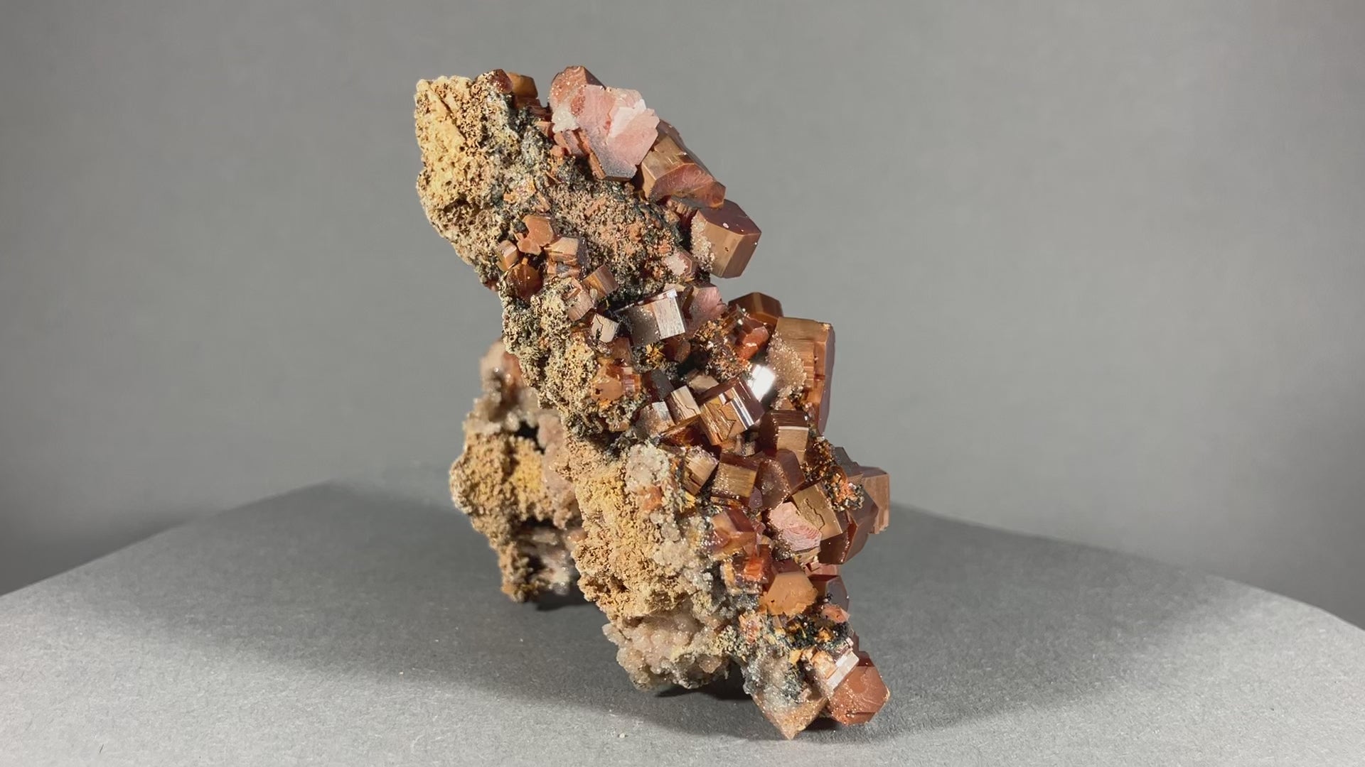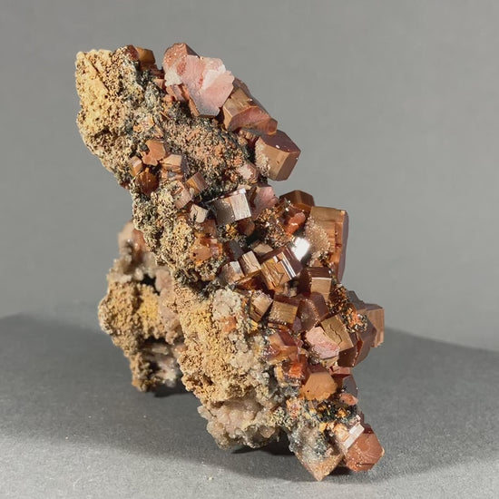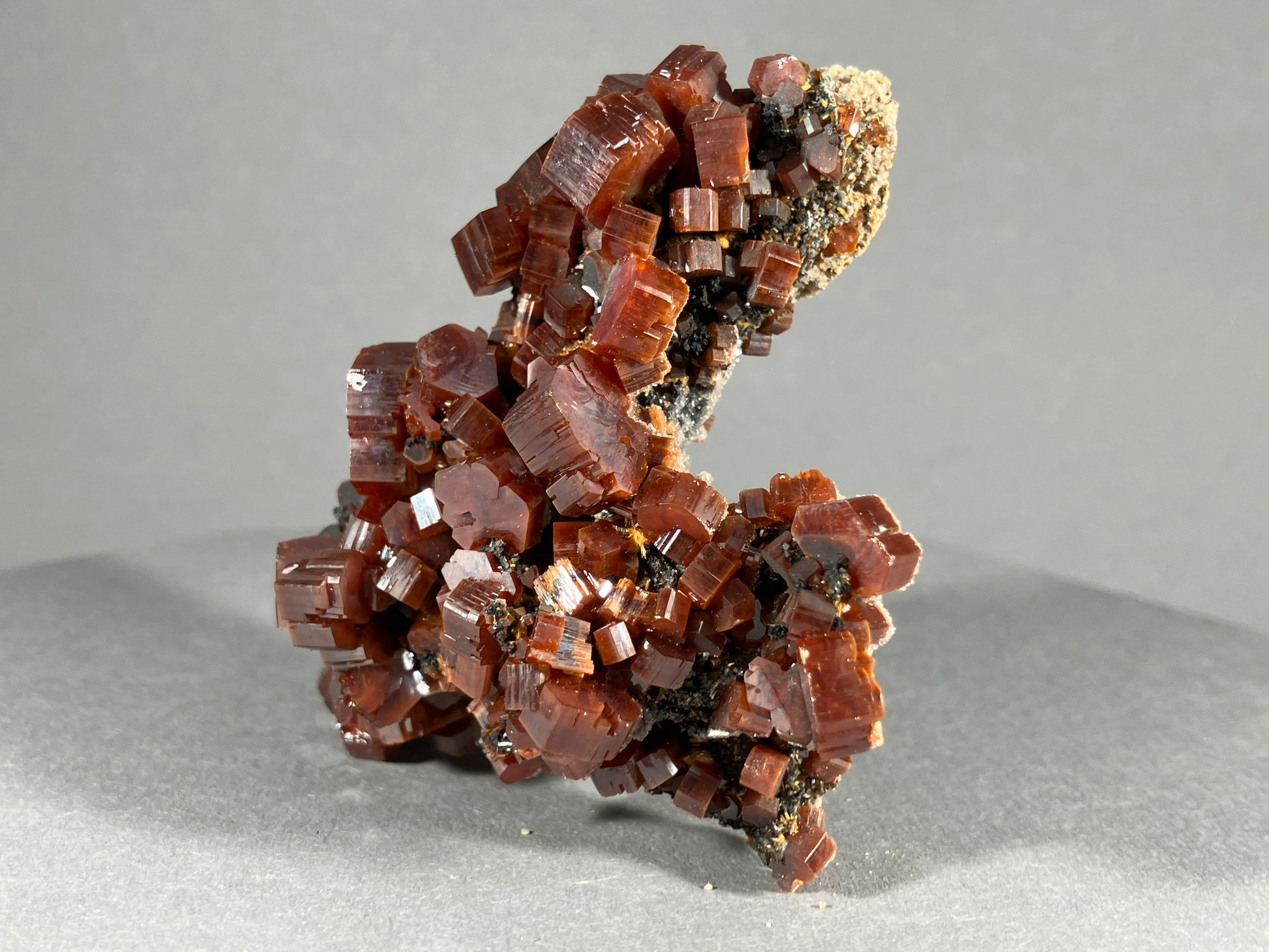 traumhafte und wunderschöne tiefrote Vanadinitkristalle auf Sandsteinmatrix. Ziemlich dickteafleige hochglänzende Kristalle sitzen perfekt gewachsen auf der Matrix.